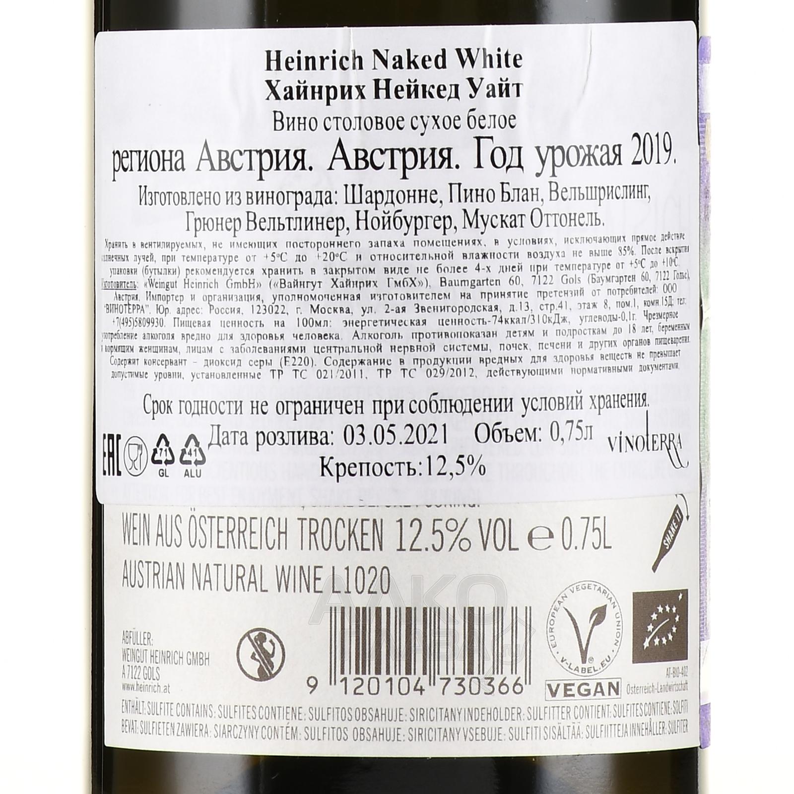 Heinrich Naked White - вино Хайнрих Нейкед Уайт 0.75 л белое сухое