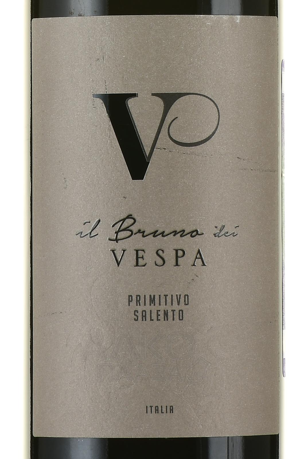 Вино Il Bruno dei Vespa Primitivo Salento 2021 г. 0.75 l – это элегантный 14-процентный напиток от итальянского производителя, созданный из апулийского урожая 2021 года. Сбор винограда начинается в первой декаде сентября. Ягоды в течение 10 дней настаивают на кожице, а после сбраживают в стальных чанах. Созревание красного полусухого вина протекало в тарах из лимузенского дуба в течение 4-х месяцев, а в марте 2022 года напиток был бутилирован. Готовый алкоголь имеет потенциал к выдержке до 3-х лет.