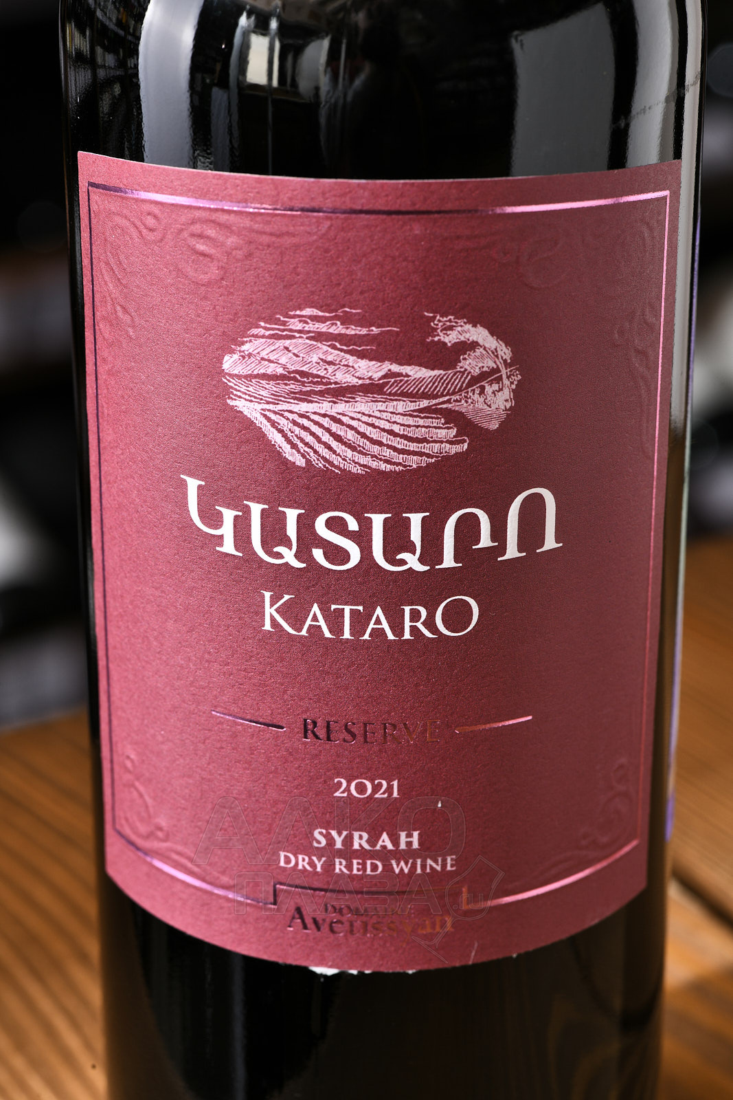 Красное сухое вино Kataro Reserve Syrah 2021 год 0,75 л — выдержанный напиток из Армении,история этого бренда уходит своими корнями в Нагорный Карабах, Гадрутский район, виноград европейского сорта Сира с лучших участков араратской долины. Сбор урожая проводился в ограниченный сезон. Сусло, полученное по технологии длинной мацерации, сбраживалось на мезге. Выдержка в бочках из под дуба заняла около полутора лет.