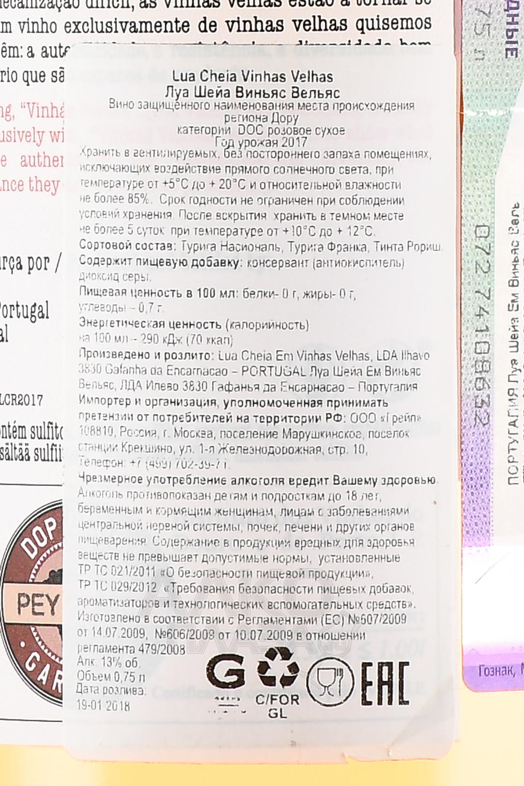 Розовое сухое вино Lua Cheia em Vinhas Velhas Rose 0,75 л – это легкий освежающий напиток, который сочетается с различными блюдами и закусками. Его можно взять с собой на пикник и пляж либо подать к столу в жаркий день. Спиртное изготавливается из красных сортов винограда. Ягоды собирают в регионе Дору на севере Португалии. Старые лозы дают низкий урожай, отличающийся великолепными вкусоароматическими характеристиками. На винодельне плоды измельчают, сусло настаивают на кожице в течение 12 часов, а затем несколько днем ферментируют на природных дрожжах.