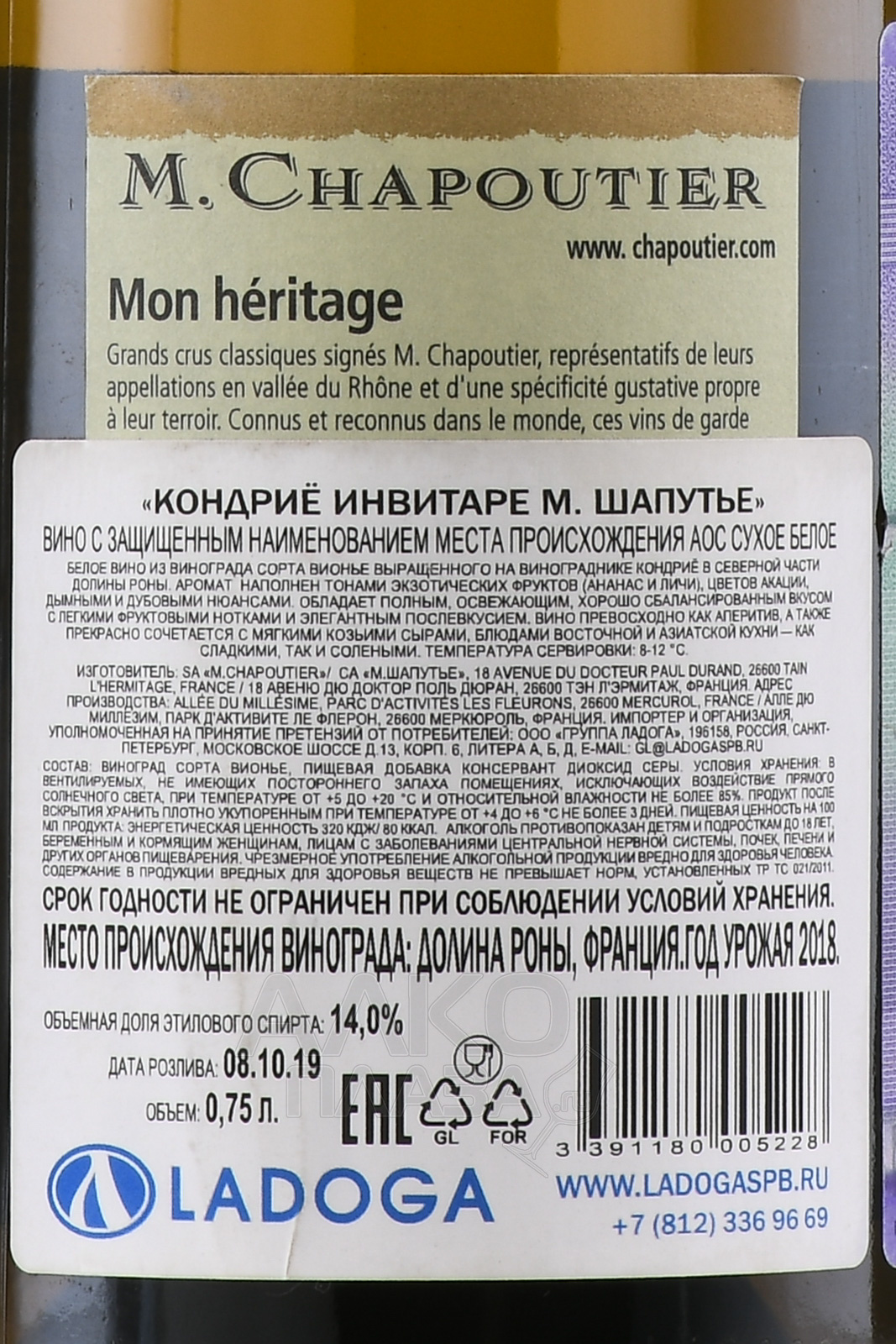 M.Chapoutier Condrieu Invitare AOC - вино М.Шапутье Кондриё Инвитаре 0.75 л белое сухое