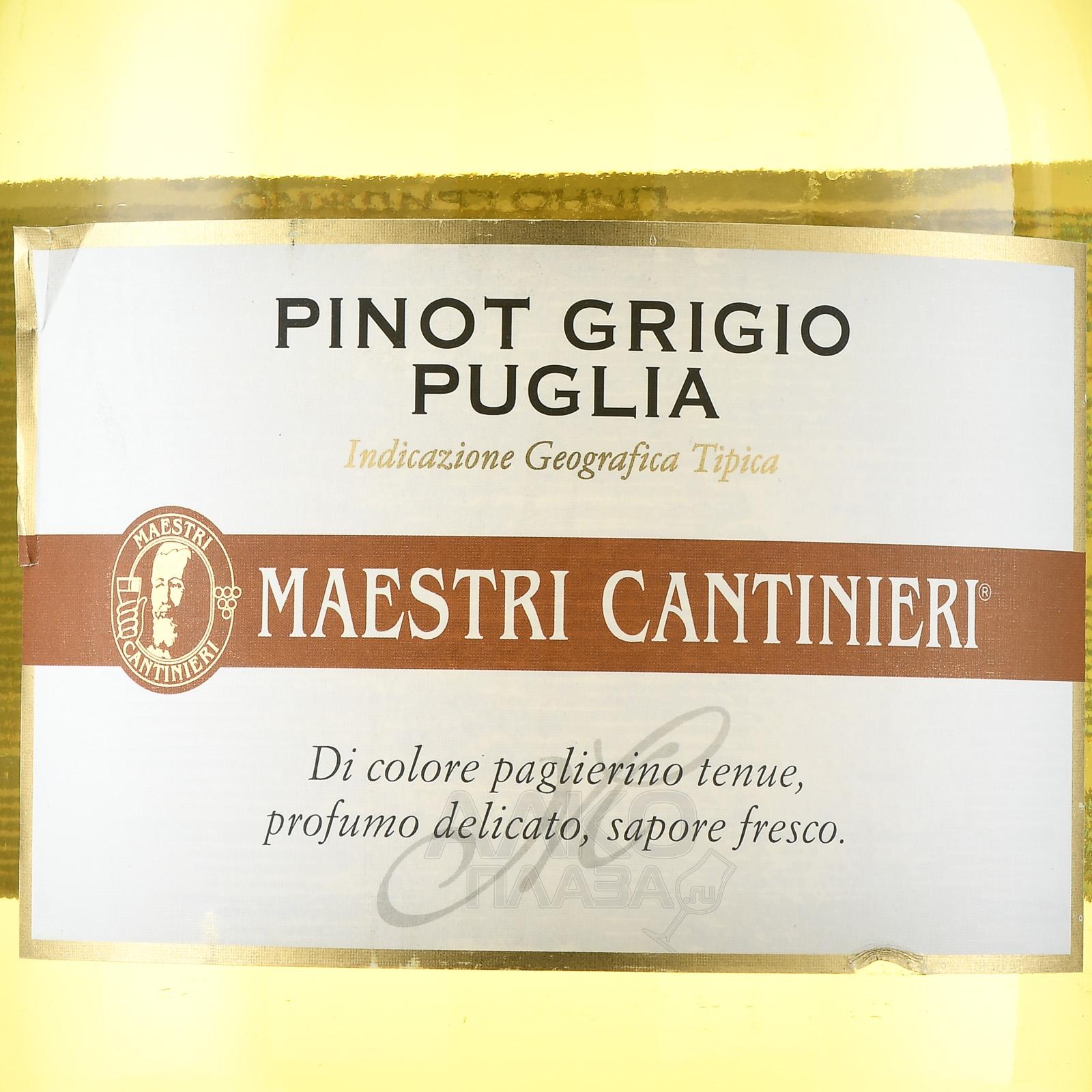 Белое полусухое вино Maestri Cantinieri Pinot Grigio IGP 5 л выпускается в большом формате, удобном для мероприятий и праздничных застолий. Оно производится в регионе Апулия. Для напитка используют спелый виноград сорта Пино Гриджо, который собирают вручную ранним утром, избегая жары. Затем ягоды аккуратно прессуют, сусло отправляют на ферментацию в стальных ёмкостях при строго контролируемой температуре. Это сохраняет свежесть и яркость аромата. Выдержка также проходит в стали, благодаря чему вино получается лёгким, живым и свежим. Большой объём бутылки обеспечивает удобство сервировки для большой компании.