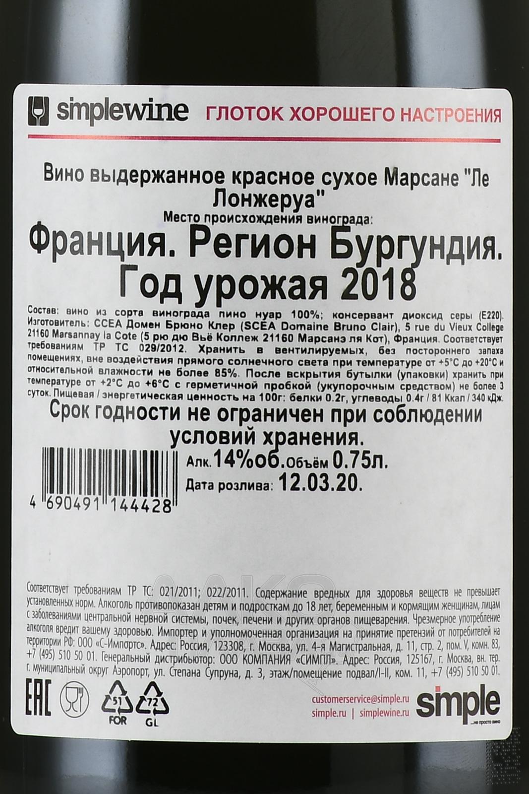 Marsannay Les Longeroies - вино Марсане Ле Лонжеруа 0.75 л красное сухое