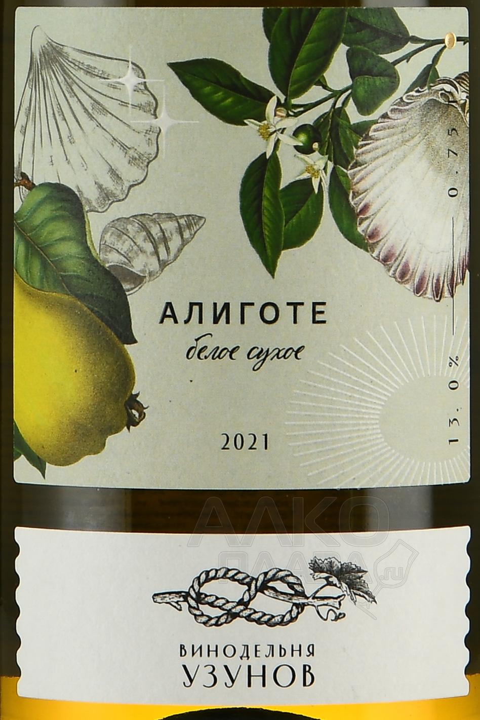 Вино Моно Алиготе Узунов — виноград для производства вина собирается вручную. Ферментация проходила при низкой температуре. Вино выдержано на дрожжевом осадке в течение полугода. Цвет светло-соломенный. В аромате луговые травы, белые фрукты, минеральные нотки. Вкус минеральный, с хорошей сбалансированной кислотностью и ярким фруктовым послевкусием. Рекомендованная температура подачи 8-9 С°. В качестве сопровождения рекомендуются устрицы, холодные рыбные закуски.