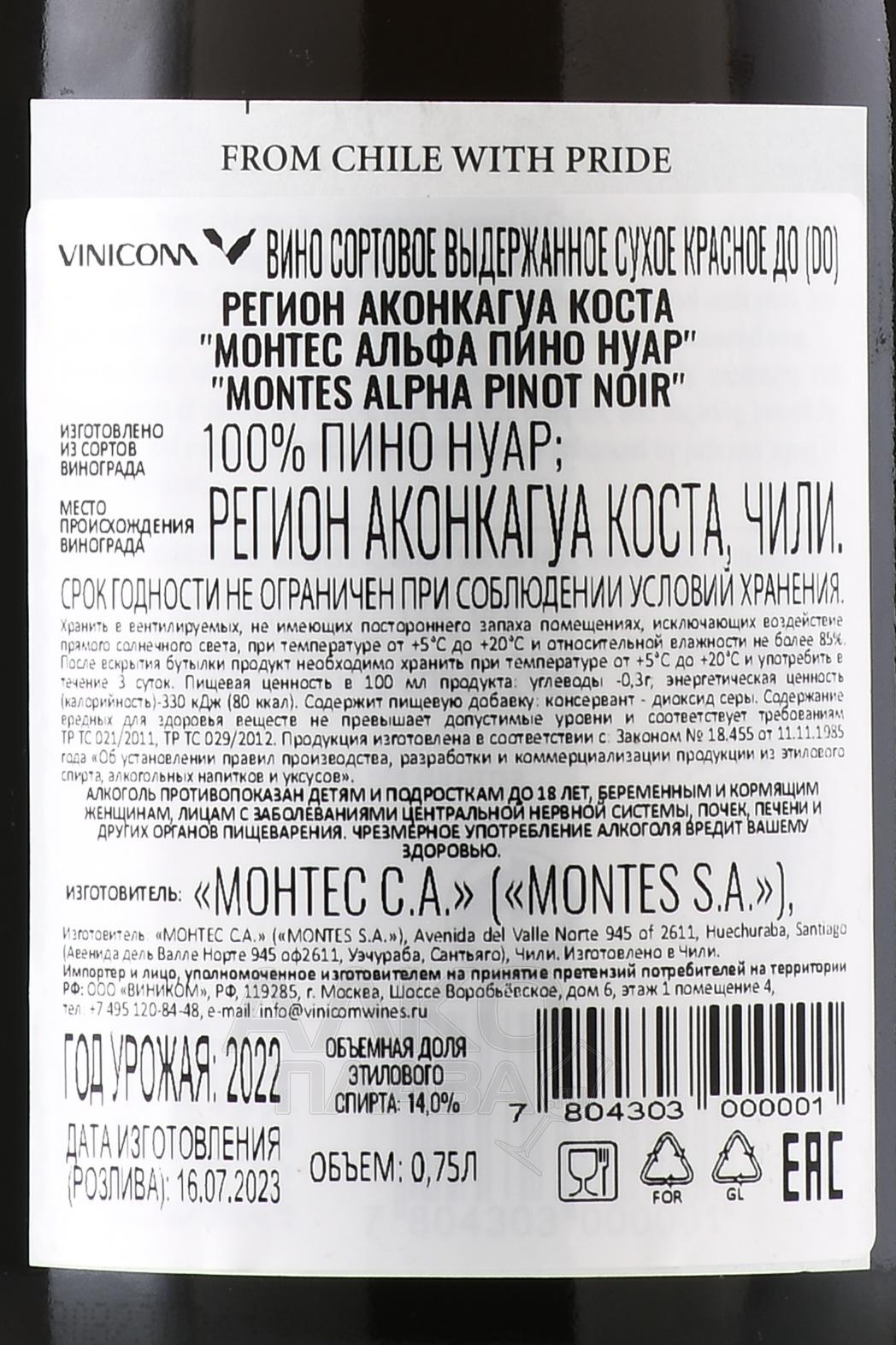 Montes Alpha Pinot Noir - вино Монтес Альфа Пино Нуар 0.75 л красное сухое