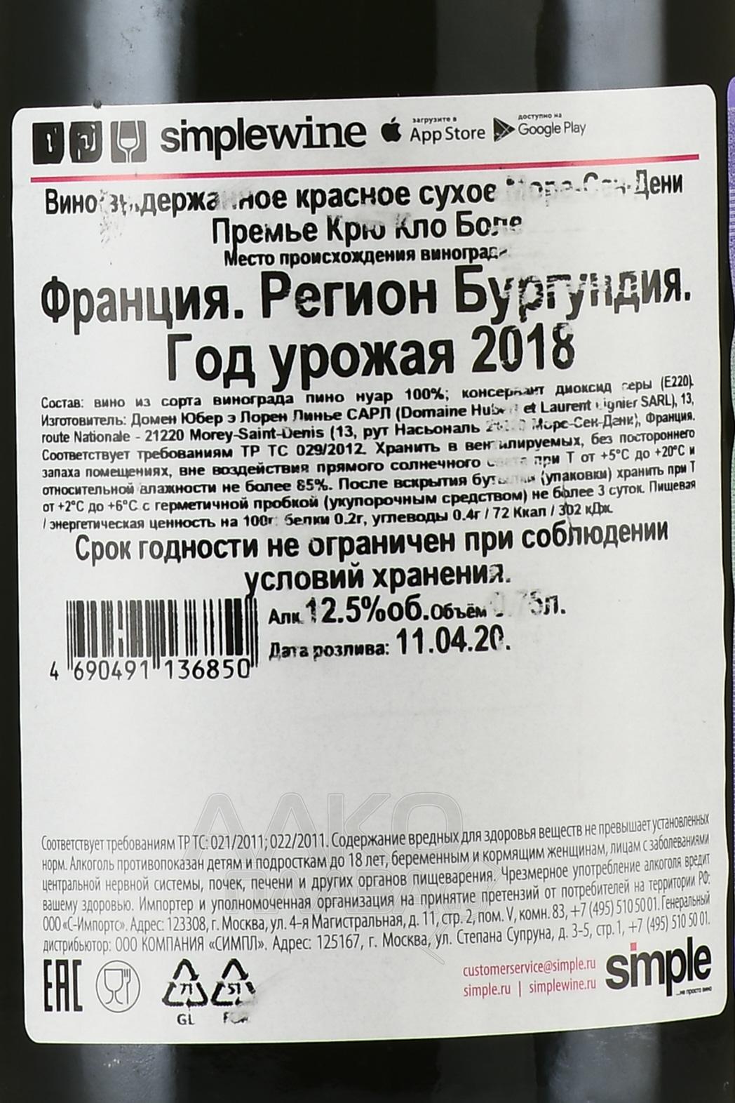 Morey-Saint-Denis Premier Cru Clos Baulet - вино Море-Сен-Дени Премье Крю Кло Боле 0.75 л красное сухое