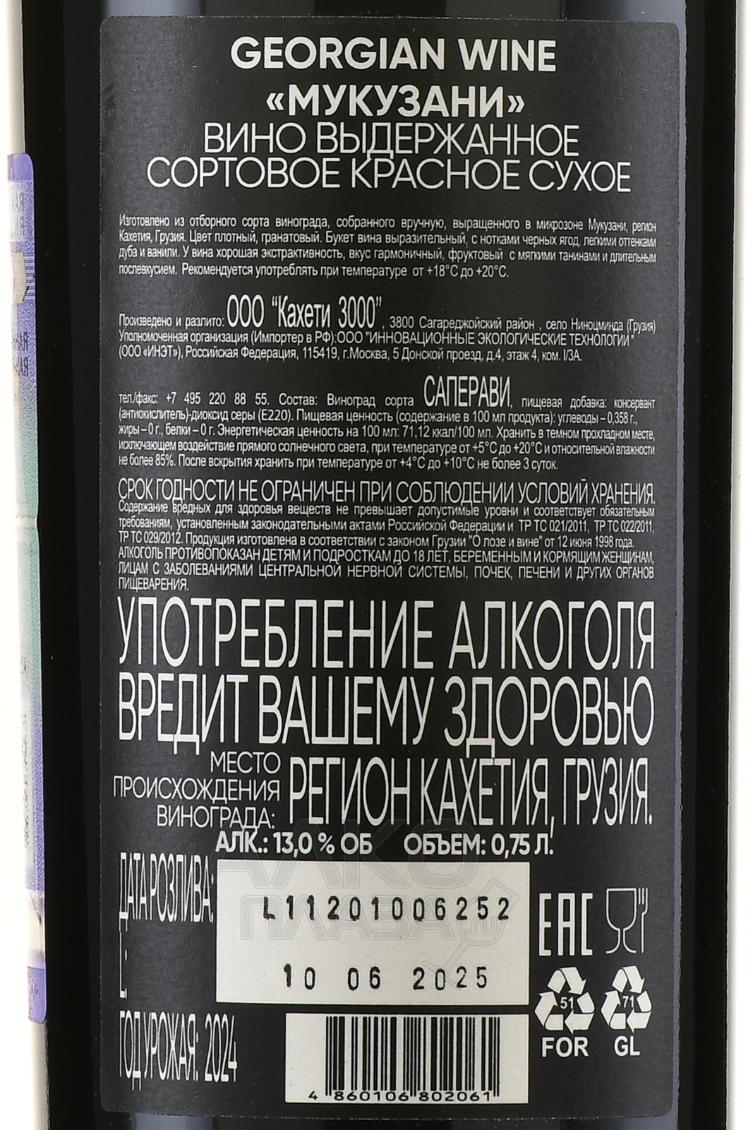 Mtevino Mukuzani - вино Мтевино Мукузани 0.75 л красное сухое