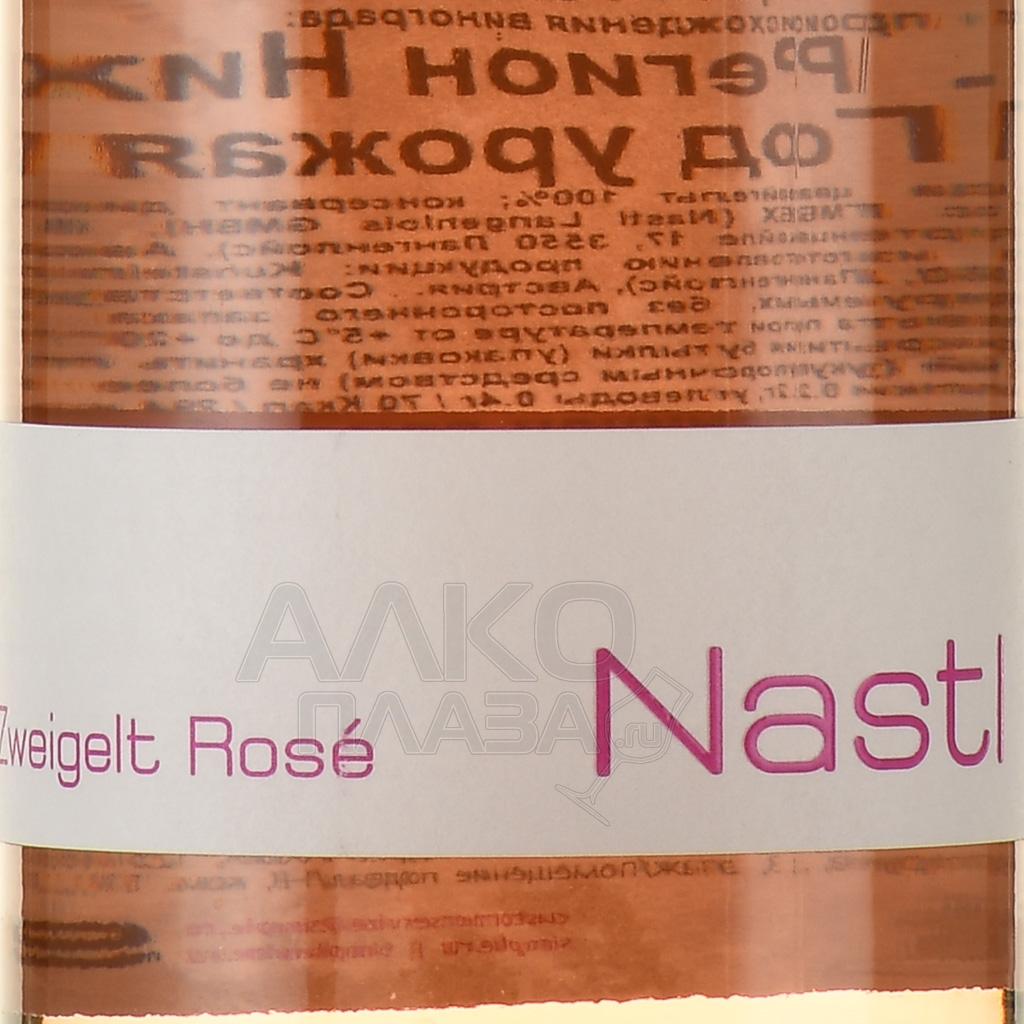 Розовое сухое вино Nastl Zweigelt Rose 2021 г. 0,75 л рождено в Нижней Австрии и отличается элегантным стилем. Сорт Цвайгельт, используемый для производства, собирают ручным способом на последней неделе сентября. Далее виноградное сусло мацерируют 8 часов на мезге для окрашивания и ферментируют при температуре 18 градусов в стали. Вино проходит недолгую выдержку в стальных резервуарах на тонком осадке.
