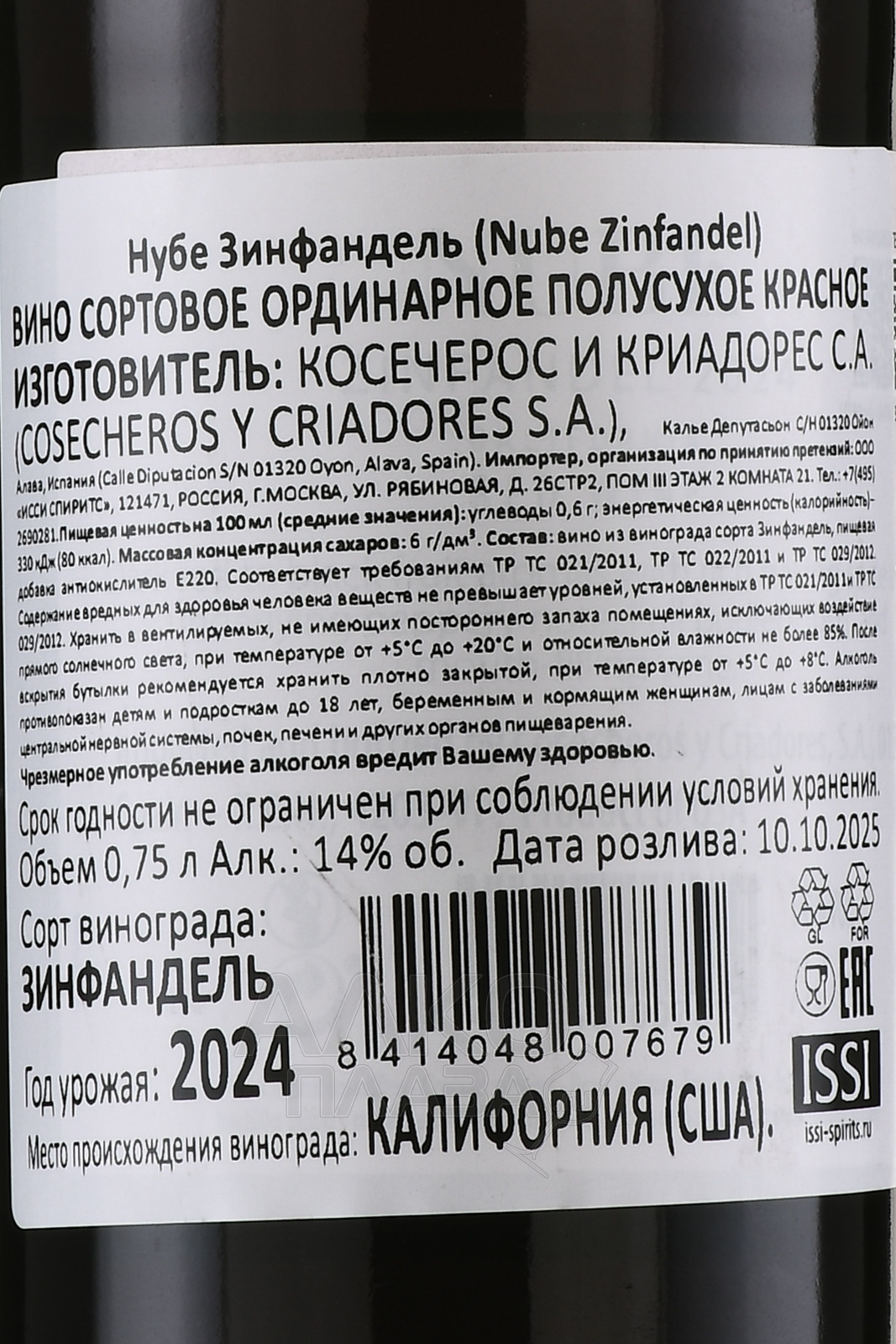 Nube Zinfandel California - вино Нубе Зинфандель Калифорния 0.75 л красное полусухое