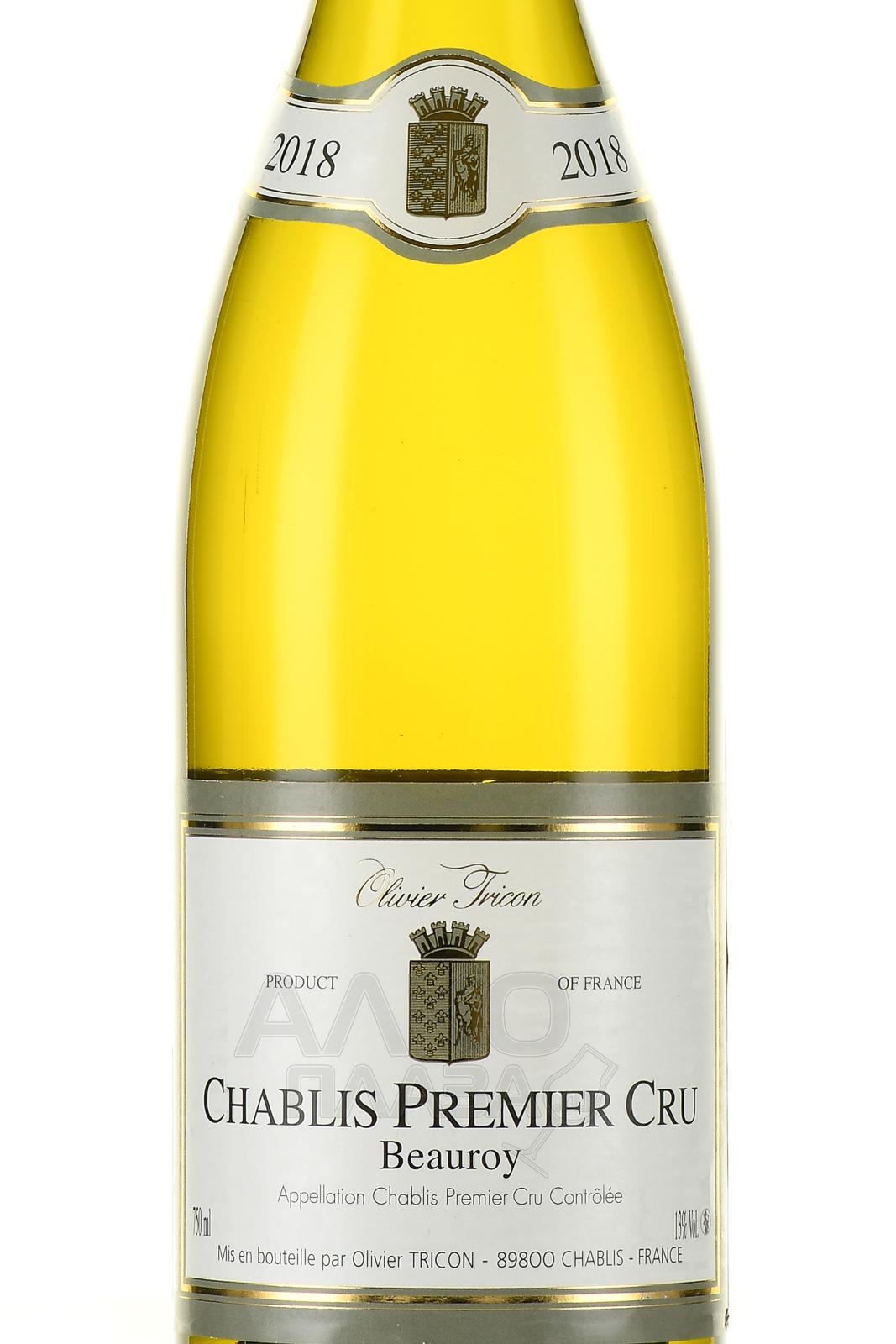 Белое сухое вино Olivier Tricon Chablis Premier Cru Beauroy 0,75 л - представляет себя напиток произведенный на участке Боруа имеющего статус Премьер Крю Шабли . Урожай собирается с лоз возраст которых в среднем составляет 35 лет. На винодельне ягоды тщательно сортируются и деликатно прессуются после чего следует алкогольная ферментация и яблочно-молочное брожение. Старение готового вина проходит в нейтральной среде на протяжении 9 месяцев.
