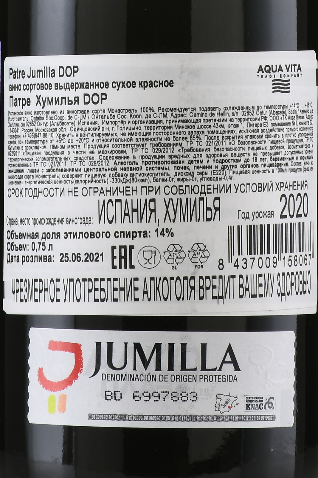 Patre Jumilla - вино Патре Хумилья 0.75 л красное сухое