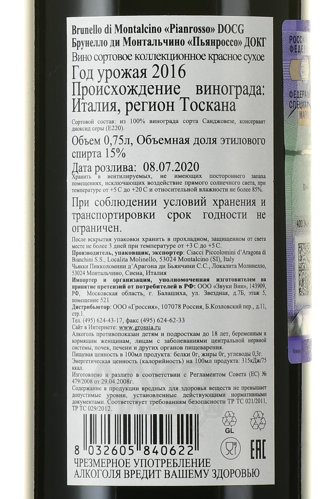Pianrosso Brunello di Montalcino DOCG - вино Пьянроссо Брунелло ди Монтальчино ДОКГ 0.75 л красное сухое
