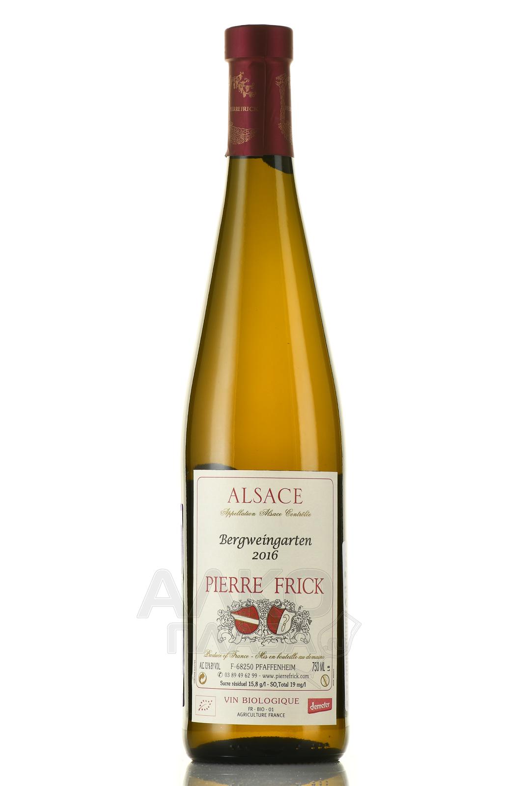 Вино Эльзас Пьер Фрик Бергвайнгартен 2016 г. 0,75 л белое полусухое — натуральный 13-процентный премиальный напиток Франции, изготовленный из урожая одного года сбора с виноградников Эльзаса, имеющих биодинамический сертификат. Виноград Сильванер выращивается на известковой почве с влиянием песчаника. По окончании ферментации вино созревало на осадке в столетних дубовых бочках.