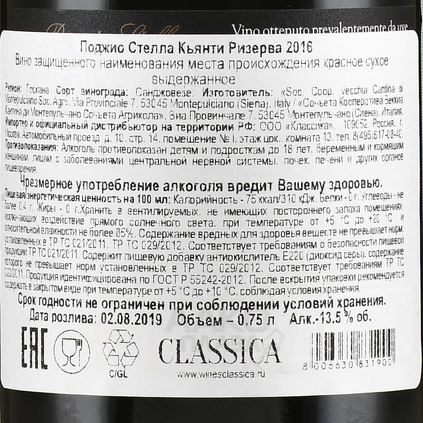 Poggio Stella Chianti Riserva - вино Поджио Стелла Кьянти Ризерва 0.75 л красное сухое