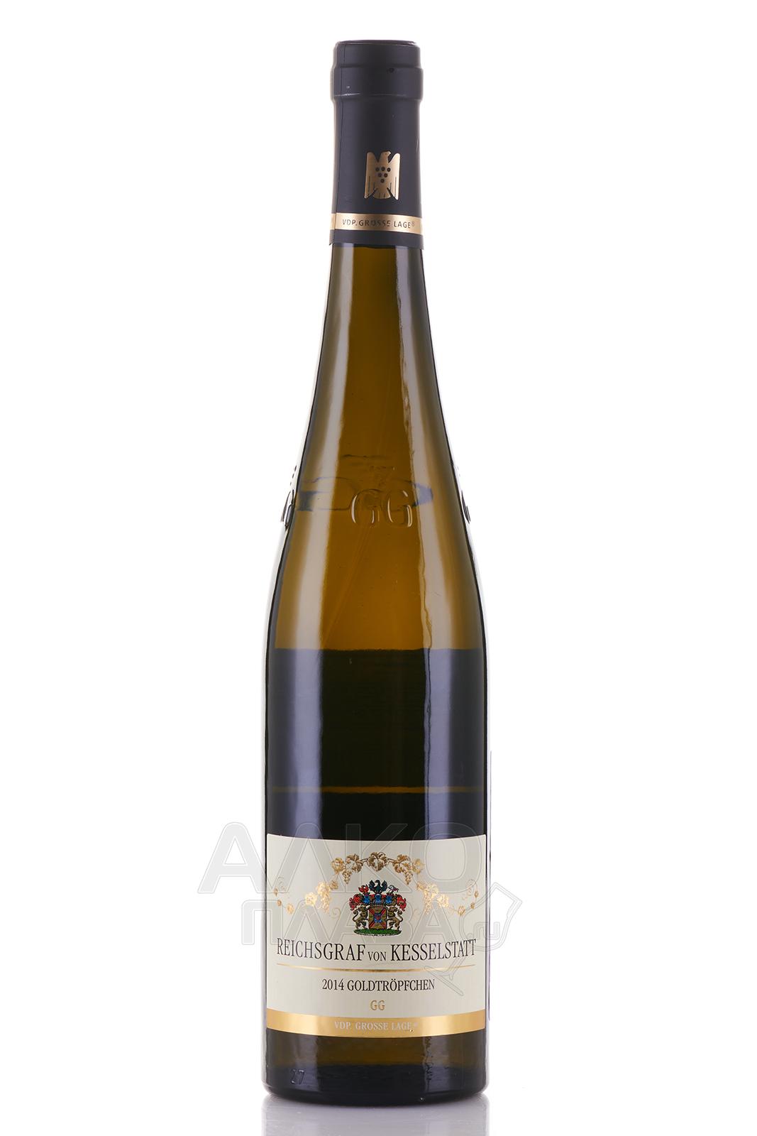 Белое полусухое вино Riesling Goldtropfchen Grosses Gewachs (GG) Reichsgraf von Kesselstatt 0,75 л — моносепажный напиток премиального качества, который выпустила старейшая винодельня из региона Германии Мозель-Саар-Рувер с дренированным сланцевыми почвами. Его изготовили на основе стопроцентного сорта Рислинг с участков престижного класса GG — этот статус является эквивалентом Гран Крю. После ручной сортировки ягоды отправили для винифкации в терморегулируемые чаны из нержавеющей стали, где их ферментировали вместе с дикими штаммами дрожжей. До бутилирования вино выдерживали в дубовых бочонках не дольше одного года.