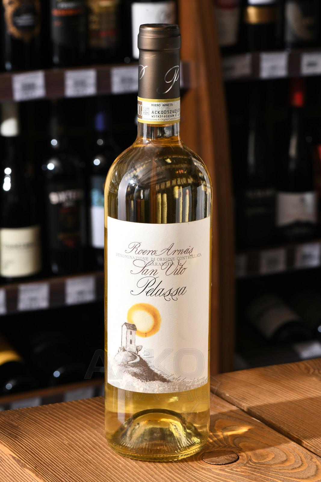 Белое сухое вино Роеро Арнеис Сан Вито Пеласса 2021 г. 0,75 л — 13-градусный итальянский моносепажный напиток, созданный из вручную перебранного винограда Арнеис, поспевшего в Пьемонте — регион Роеро, и собранный в определенный урожайный год. Выдержка осуществляется в чанах из стали на осадке на протяжении полугода. Из-за сложности вкусоаромата вина Роеро Арнеис часто именуют «белым Бароло».