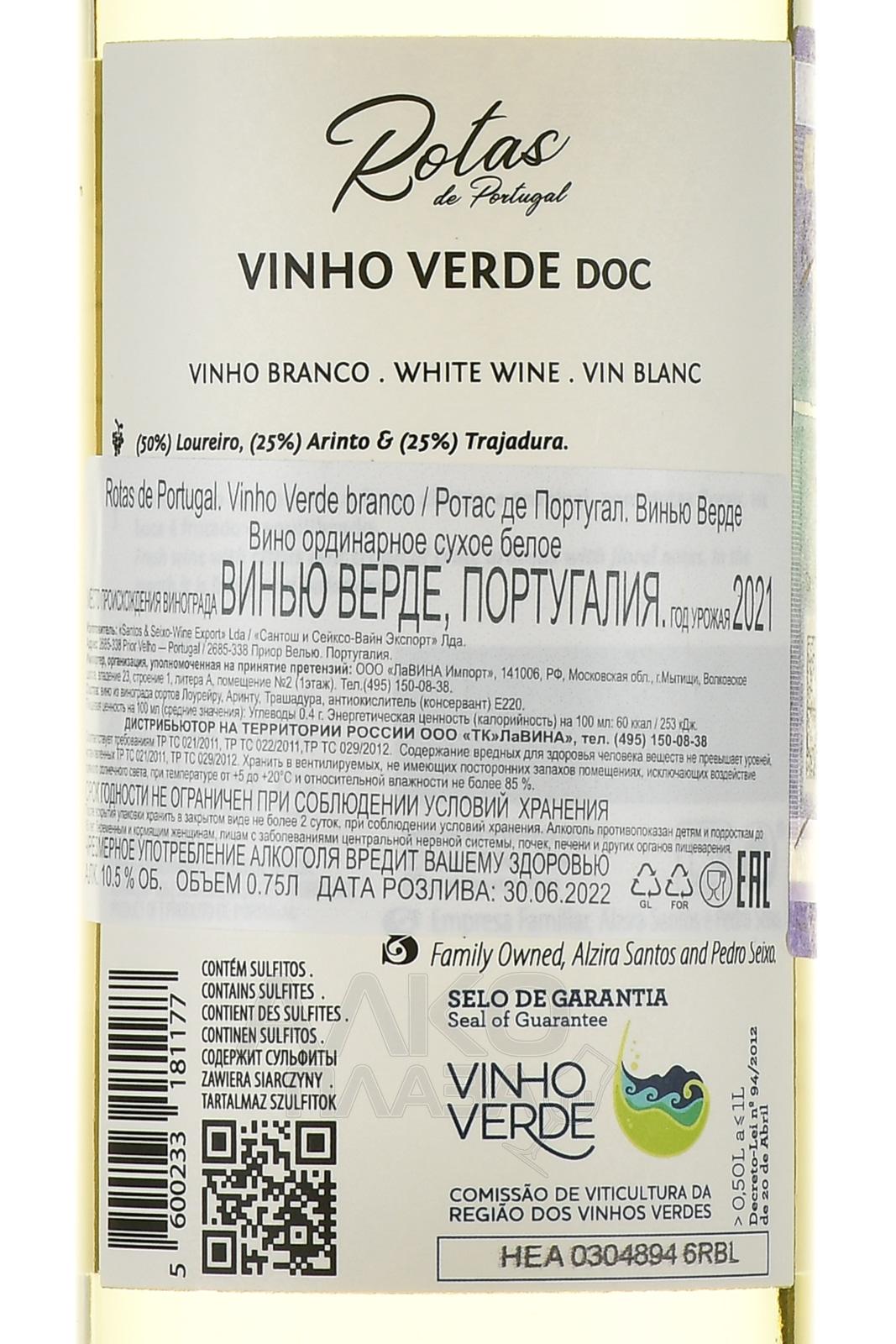 Белое сухое вино Rotas de Portugal Vinho Verde 0,75 л – купаж из традиционных португальских сортов винограда. Ягоды собирают вручную в регионе Винью Верде, известном своими легкими и освежающими напитками. Винифицируют напиток классическим европейским способом – в стальных чанах с термоконтролем. Брожение проходит при низких температурах, благодаря чему спиртное сохраняет яркий фруктовый профиль.