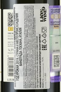 Красное сухое вино Salcheto Riserva Nobile di Montepulciano DOCG 2019 г. 0,75 л произведено в тосканском апелласьоне Нобиле ди Монтепульчано. Использовался сорт Санджовезе, также известный как Пруньоло Джентиле, с добавлением небольшого количества винограда Колорино. Сырье выращивали на холмах в окрестностях города Монтепульчано, на высоте 250-600 м над уровнем моря, между 2 реками. В 2019 году была суровая зима, но зато выдалось жаркое лето с небольшим количеством дождей, так что виноград хорошо вызрел и был собран немного позже обычного (когда уже практически начал завяливаться). Винификация осуществлялась в рамках традиционной тосканской технологии. Вино было выдержано 24 месяца в дубовых бочках (70% - ботти, 30% - тонно) и еще 12 месяцев бутылках. Потенциал его хранения составляет 10-12 лет.