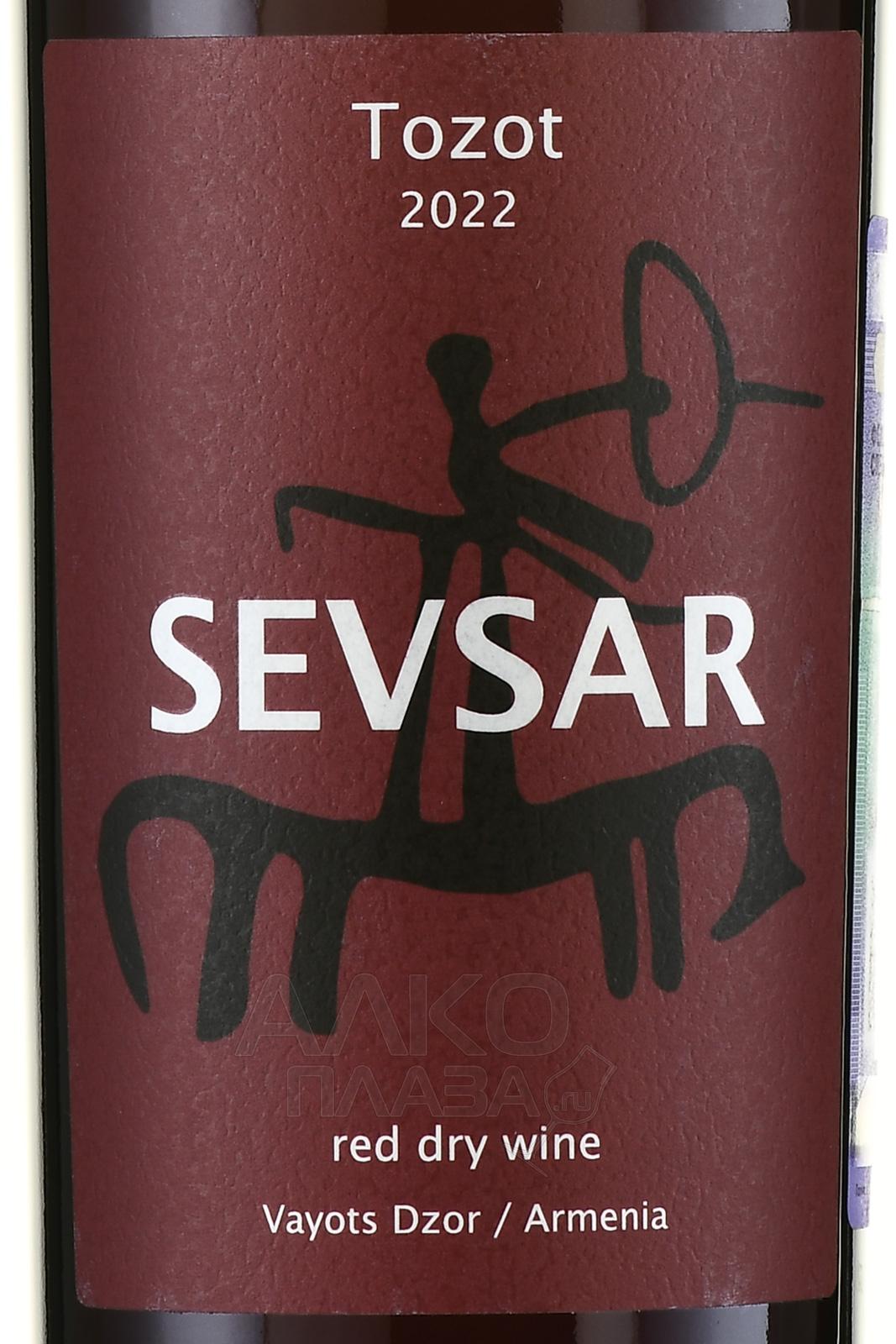 Красное сухое вино Sevsar Tozot 2022 г. 0,75 л создано из редкого армянского сорта винограда, который традиционно произрастает в горных районах региона Вайоц Дзор. Уникальная устойчивость ягод к меняющимся климатическим условиям обеспечивает высокий урожай и качество напитков. В 2022 году в Армении установилась теплая и относительно сухая погода с обилием солнечных дней, что способствовало полноценному вызреванию винограда и гармоничному распределению природных сахаров. Урожай собирали вручную, отбирая только спелые грозди. Далее ягоды прошли тщательную сортировку и ферментацию в стальных резервуарах под контролем температуры и с регулярным перемешиванием мезги. Завершающим шагом оставалась непродолжительная выдержка, которая позволяла вину приобрести сбалансированный характер перед розливом.