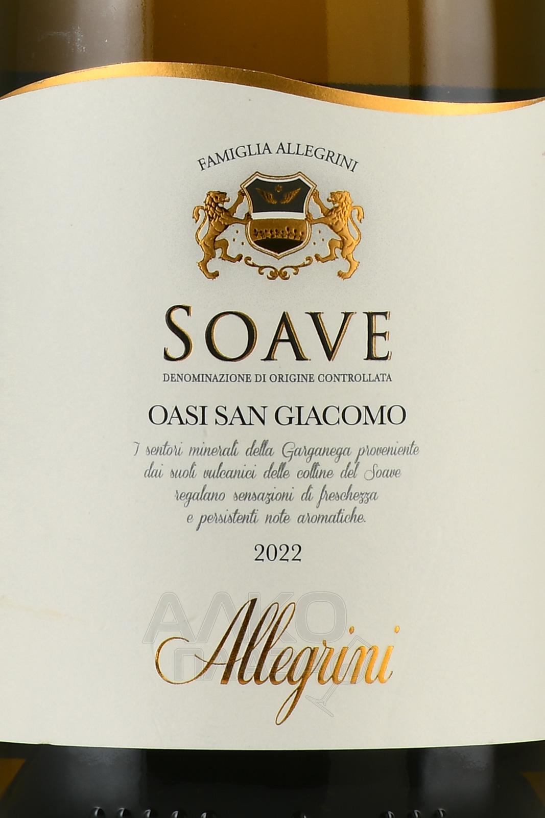 Белое сухое вино Soave Oasi San Giacomo Allegrini 2022 г. 0,75 л выпущено семейным предприятием из Италии, которое на протяжении всего существования возглавляют виноделы по фамилии Аллегрини. Производство напитка осуществилось в области Соаве (регион Венето) путем обработки винограда двух сортов с лоз средним возрастом около 32 лет. Сбор осуществился ручным способом в конце лета и начале осени. Мацерацию проводили при очень низких температурах, после чего сусло ферментировалось в стальных цистернах. Четырехмесячная выдержка также протекала в металлических чанах. Два месяца вино «отдыхало» в бутылках. Предпочтительно дегустировать его в течение четырех лет после розлива (март 2023 года).