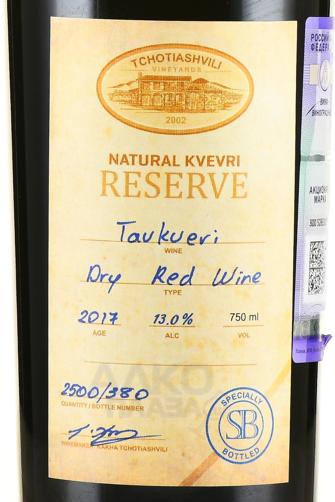 Tchotiashvili Tavkveri Qvevri - вино Чотиашвили Тавквери Квеври 0.75 л красное сухое