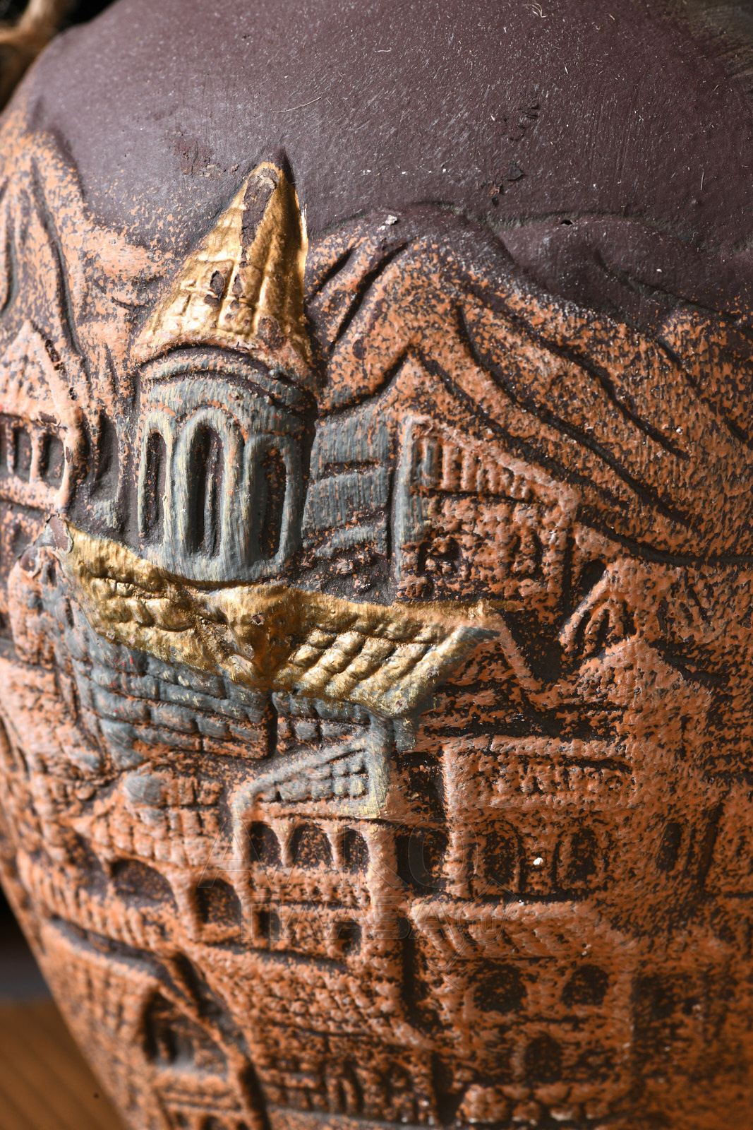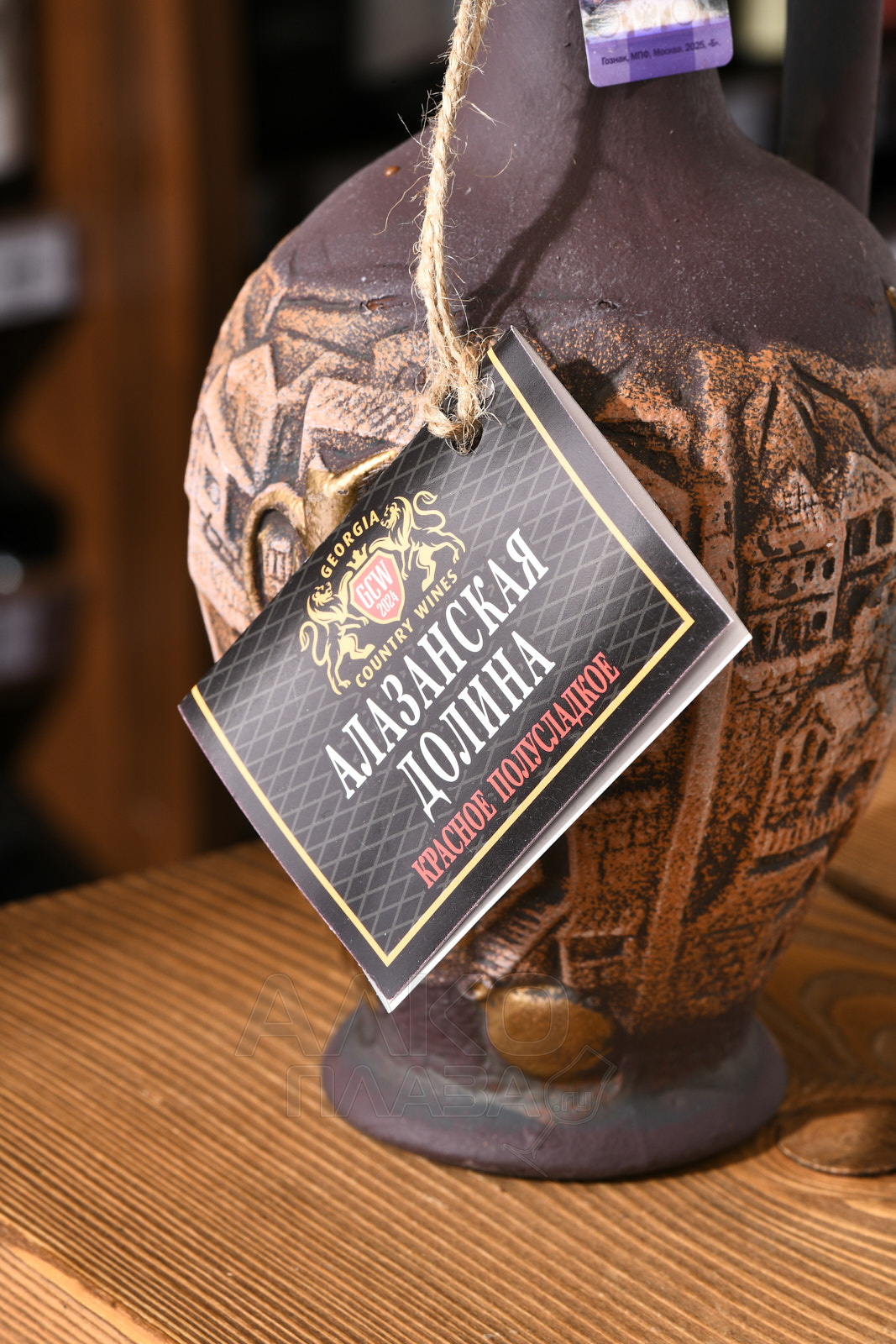 Красное полусладкое вино Алазанская Долина Джорджиа Кантри Вайнс 0,75 л в глиняном кувшине — это оригинальный и запоминающийся подарок с ярким грузинским колоритом. В стильном керамическом сосуде, сделанном вручную, представлен один из самых известных сортов. Уникальное природно-полусладкое вино из автохтонного винограда, который выращивается в долине реки Алазани, восхищает гармоничным и одновременно насыщенным букетом. Оно производится из максимально спелого сырья (сахаристость не менее 22%), что избавляет от необходимости добавления сахара. Технология винификации предусматривает неполное брожение, за счет чего виноградный сахар не перерабатывается полностью. Вино получается натурально полусладким.