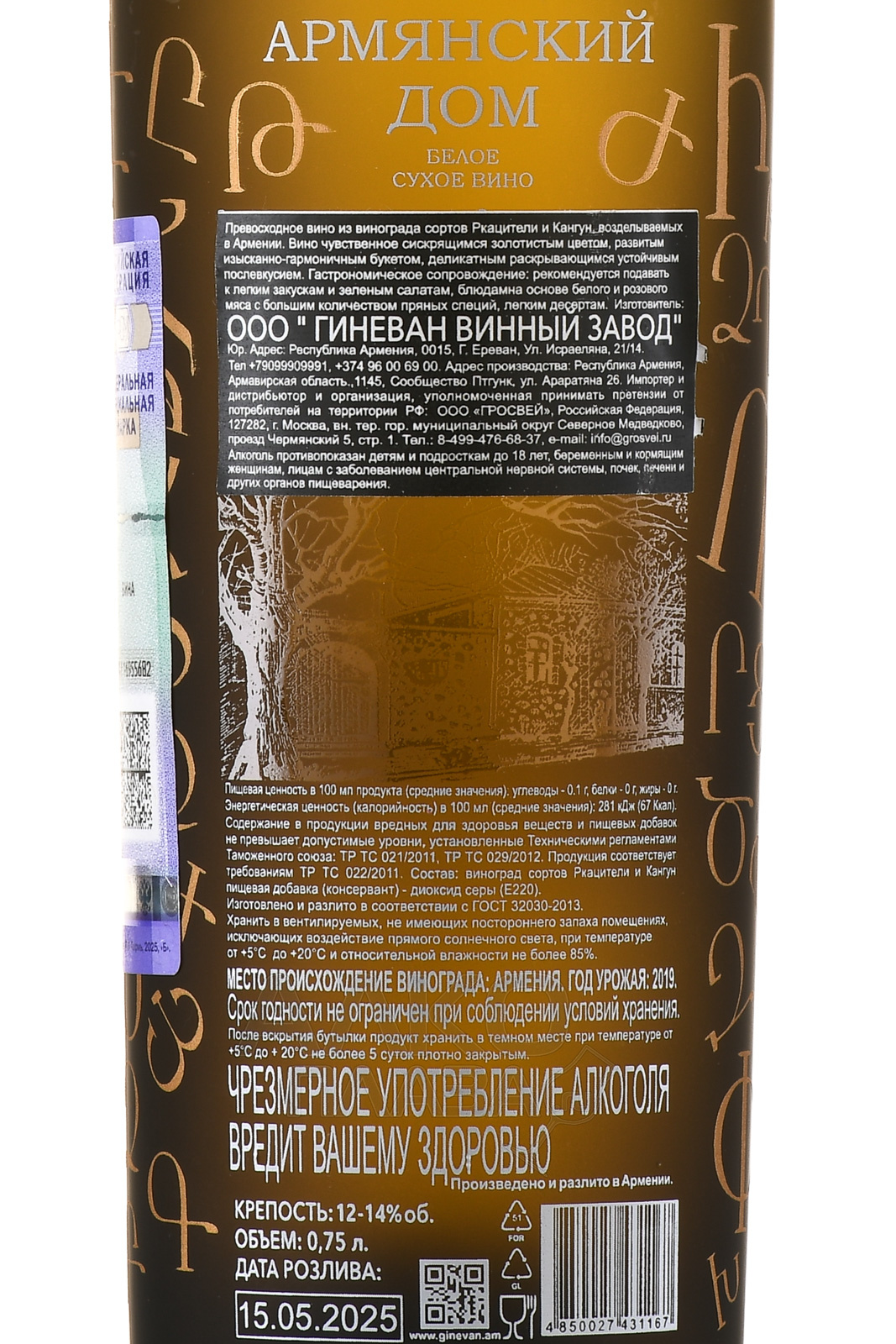 Вино Армянский дом 0.75 л белое сухое