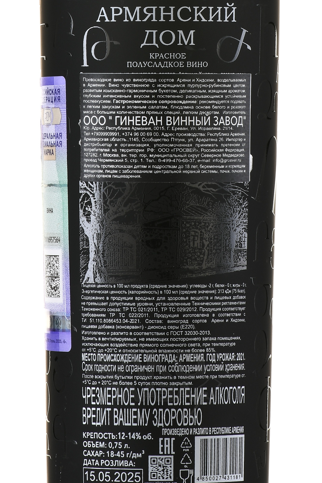 Вино Армянский дом 0.75 л красное полусладкое