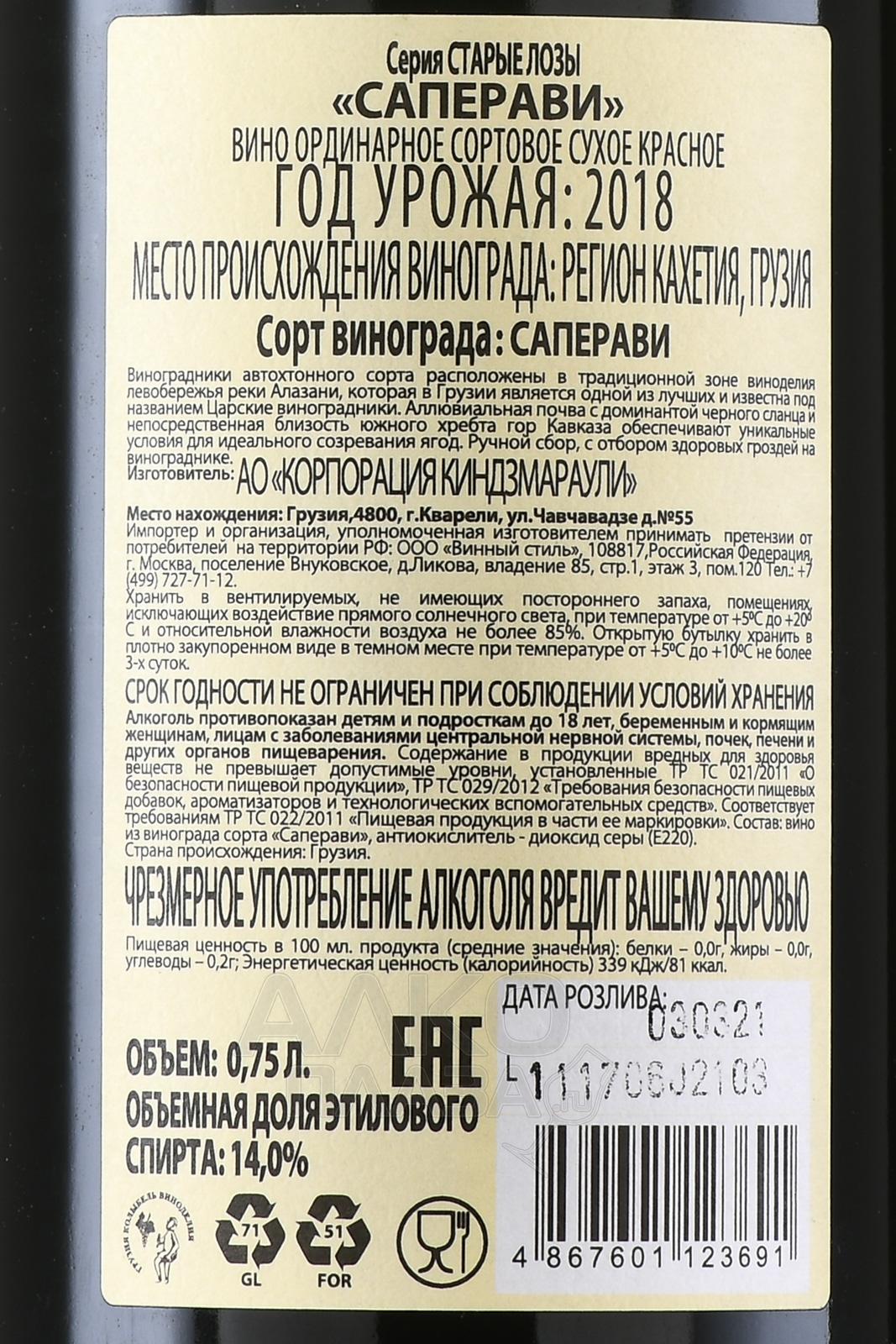 Вино Дуруджи Валлей Старые Лозы Саперави 0.75 л красное сухое