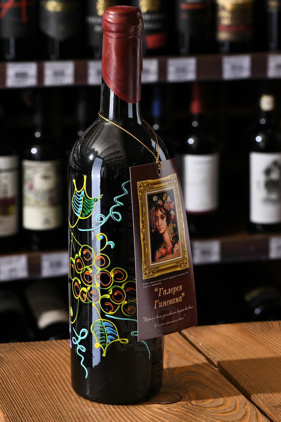 Красное сухое вино Галерея Гиневана 0,75 л – это столовая вариация армянского производства с оптимальным соотношением цены и качества. В винификации напитка участвуют местные сорта винограда. На завершающем этапе спиртное разливается в сувенирные бутылки из темного стекла, расписанные красочными изображениями.