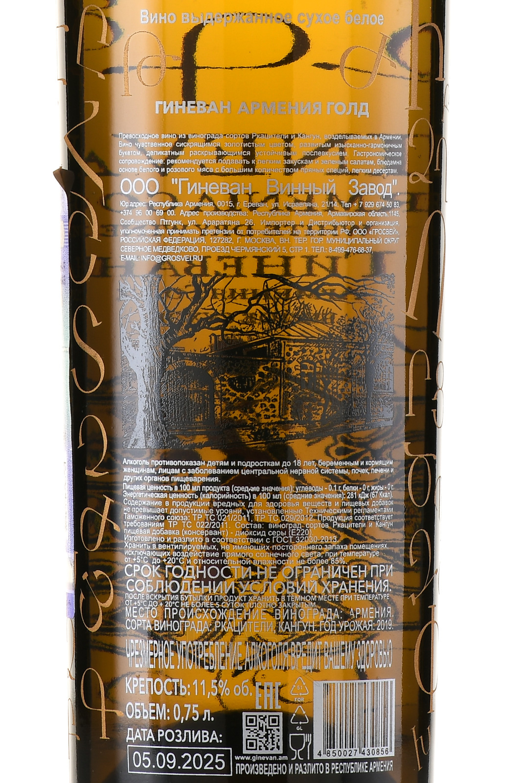 Вино Гиневан Армения Голд 0.75 л белое сухое