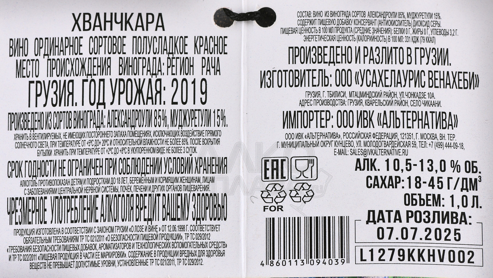 Красное полусладкое вино Джорджиа Кантри Вайнс Хванчкара 1 л в керамическом кувшине 0,75 л создано из редких автохтонных сортов винограда, выращенных на террасных склонах региона Рача в Западной Грузии. Этот терруар известен прохладным климатом и глинисто-известковыми почвами, которые придают вину насыщенность и характерный бархатистый вкус. Производство ведется по традиционной грузинской технологии с естественной ферментацией в квеври и остановкой брожения для сохранения природной сладости. После этого вино проходит короткую выдержку, что помогает сохранить свежесть и яркий аромат. Хванчкара — одно из самых узнаваемых грузинских вин, известное с XIX века и получившее международное признание за гармонию вкуса и качество. Керамический кувшин подчеркивает аутентичность и национальный стиль напитка, защищая его от света и помогая сохранить аромат.