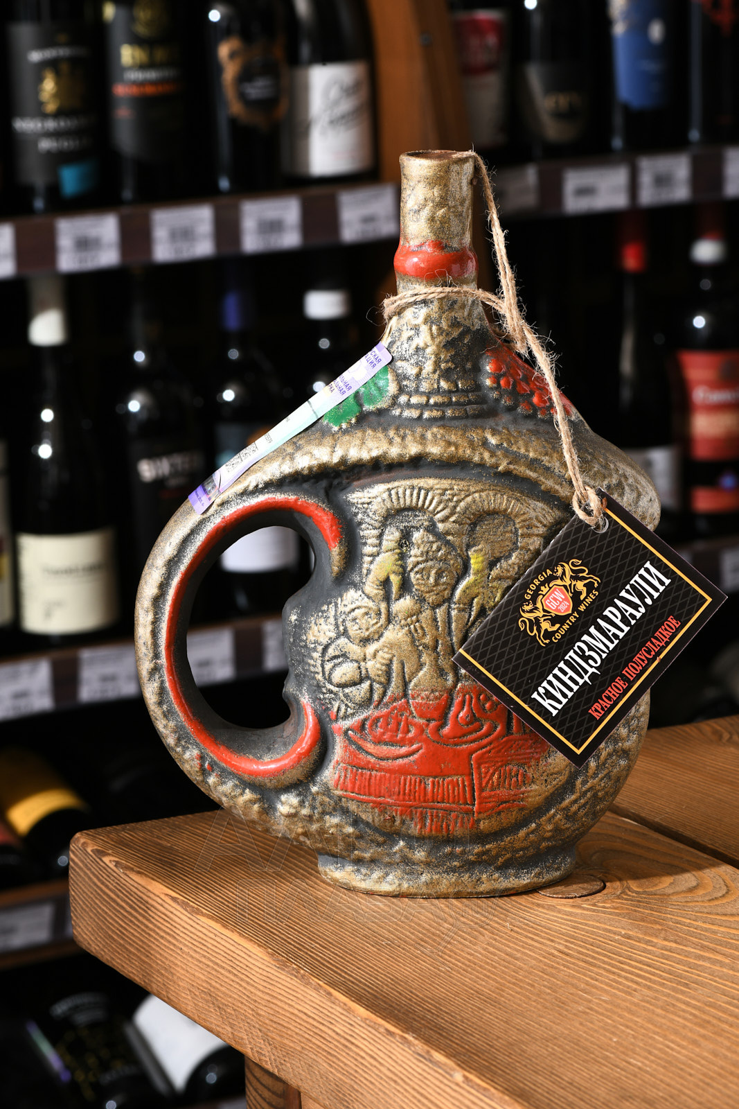 Красное полусладкое вино Киндзмараули Джорджиа Кантри Вайнс 1 л в глиняном кувшине как нельзя лучше подходит для подарка с грузинским колоритом. Знаменитый сорт из микрозоны Киндзмараули представлен в традиционном оформлении — керамическом сосуде ручной работы, навевающем ассоциации с изделиями народных мастеров. В подобные бутылки разливалось домашнее вино, ценимое за аутентичность и натуральность. Производитель ООО «Имеди-96» не отступает от традиций и применяет исконные технологии. Природно-полусладкое вино изготовлено из автохтона Саперави максимального уровня спелости (сахаристость не менее 22%) без добавления сахара. Качество продукции регулируется законом Грузии «О вине и виноделии».