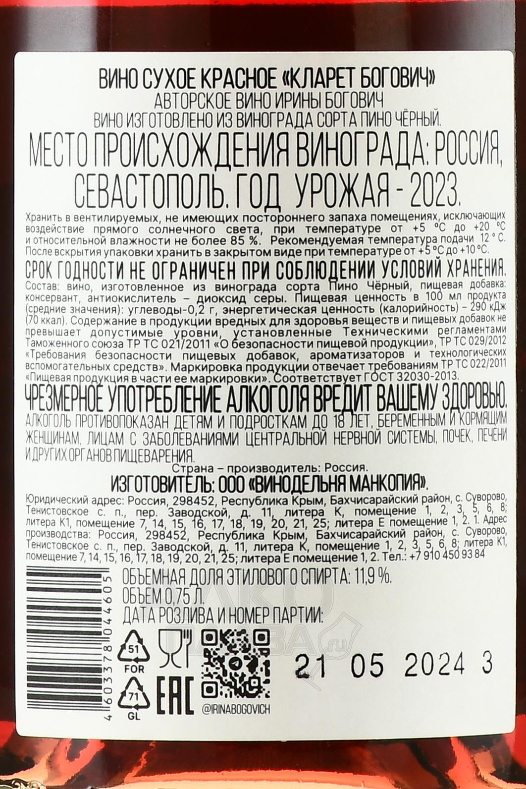 Вино Кларет Богович 0.75 л красное сухое — это вино создано в ограниченном количестве и с особым вниманием к деталям. Изготовленное из лучших ягод Пино Нуар, выращенных в идеальных условиях и собранных вручную, вино прошло выдержку на мезге и в бочках из французского дуба, что позволило ему приобрести уникальный характер.