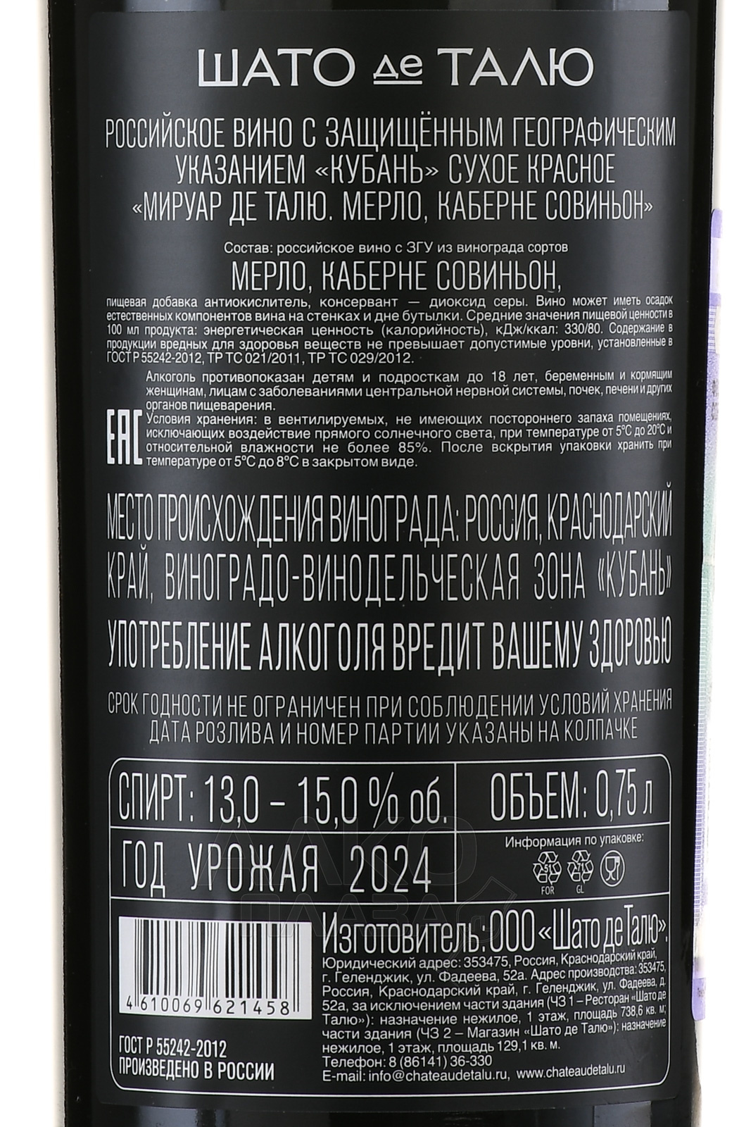 / Chateau de Talu Сайт alcoplaza.ru содержит информацию, не рекомендованную для лиц, которые не достигли возраста 18 лет. Чтобы осуществить вход на сайт, Вам необходимо подтвердить свой совершеннолетний возраст. Сведения, размещенные на сайте , не являются рекламой, носят исключительно информационный характер, и предназначены только для личного использования. Информация на сайте не является публичной офертой.