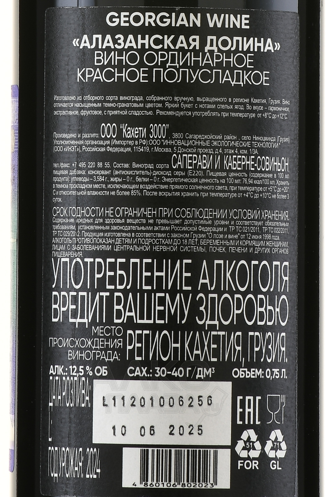 Вино Мтевино Алазанская Долина 0.75 л красное полусладкое