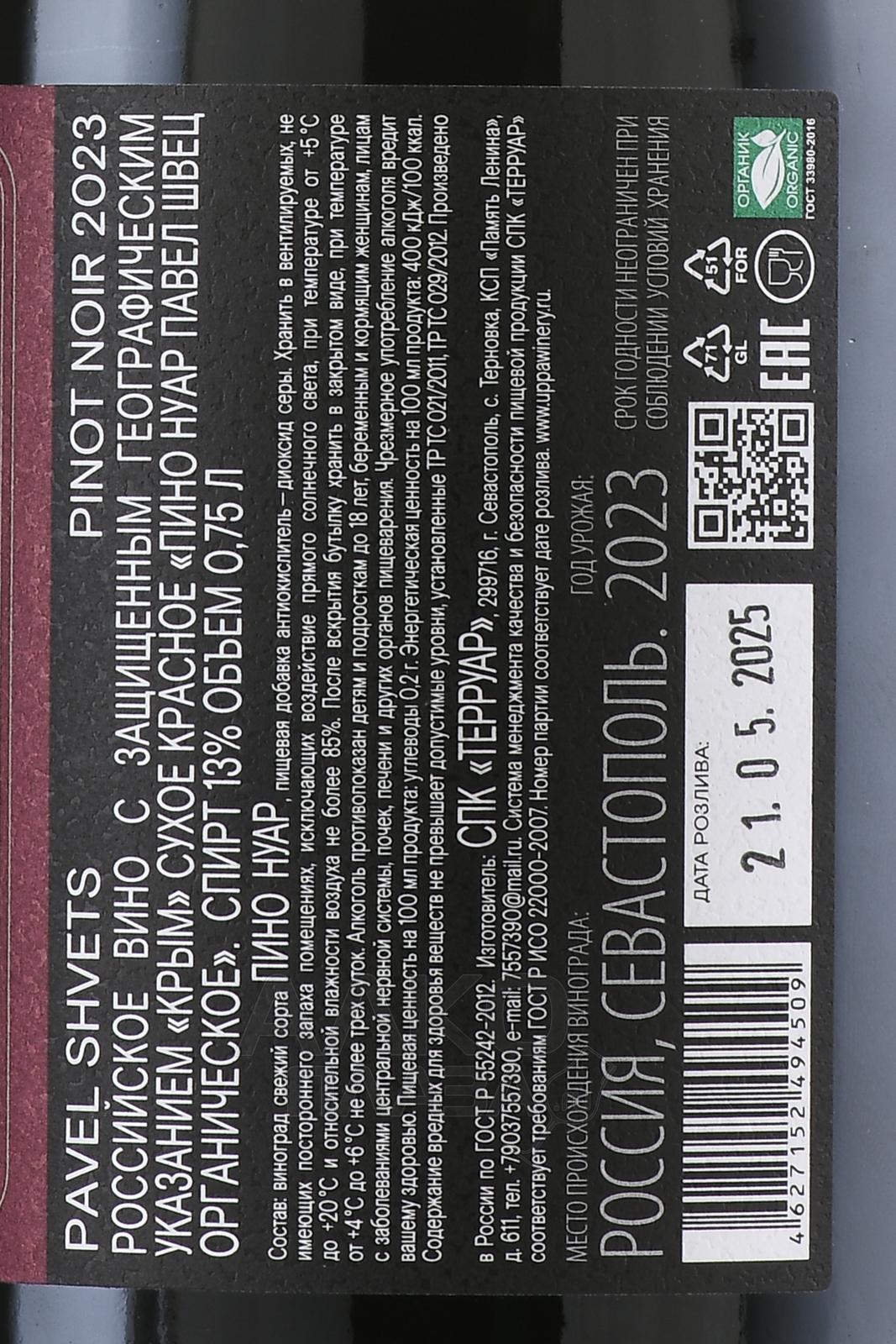 Красное сухое вино Pavel Shvets Pino Noir Rodnoe 0,75 л – великолепный образец российского виноделия от основателя первого в стране биодинамического семейного хозяйства UPPA Winery и профессионального сомелье Павла Швеца. На производство напитка пошли ягоды с виноградника в селе Родное Балаклавского района города Севастополя. Плоды созрели на юго-восточном склоне на высоте 350-400 метров над уровнем моря. В погребе сырье подвергли ферментации, частично отделив от гребней. В завершение спиртное отдыхало 1,5 года во французских дубовых барриках объемом 228 литров.