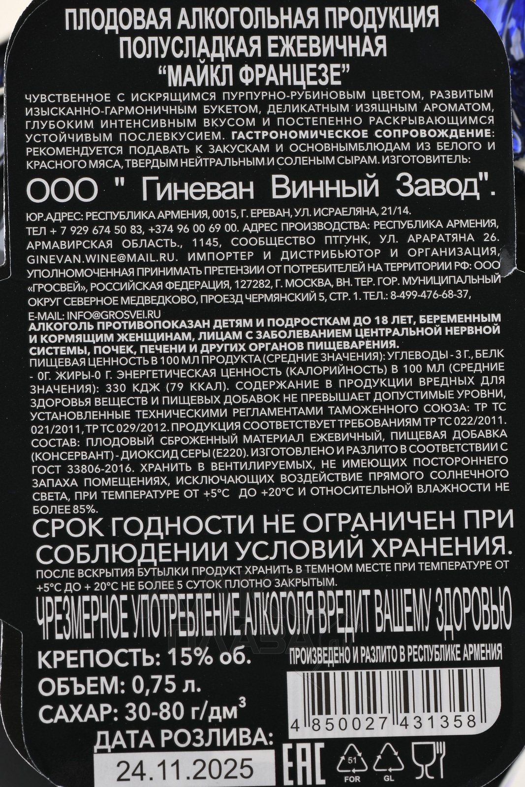 Вино плодовое Майкл Францезе Ежевика 0.75 л полусладкое в п/у