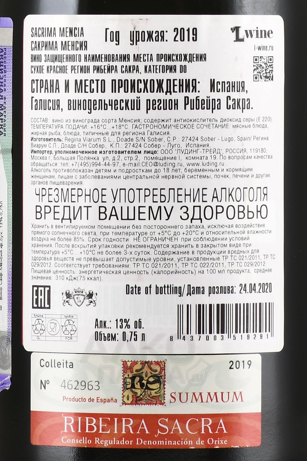 Regina Viarum Sacrima Mencia DO - вино Сакрима Менсия Регина Виарум ДО 0.75 л красное сухое