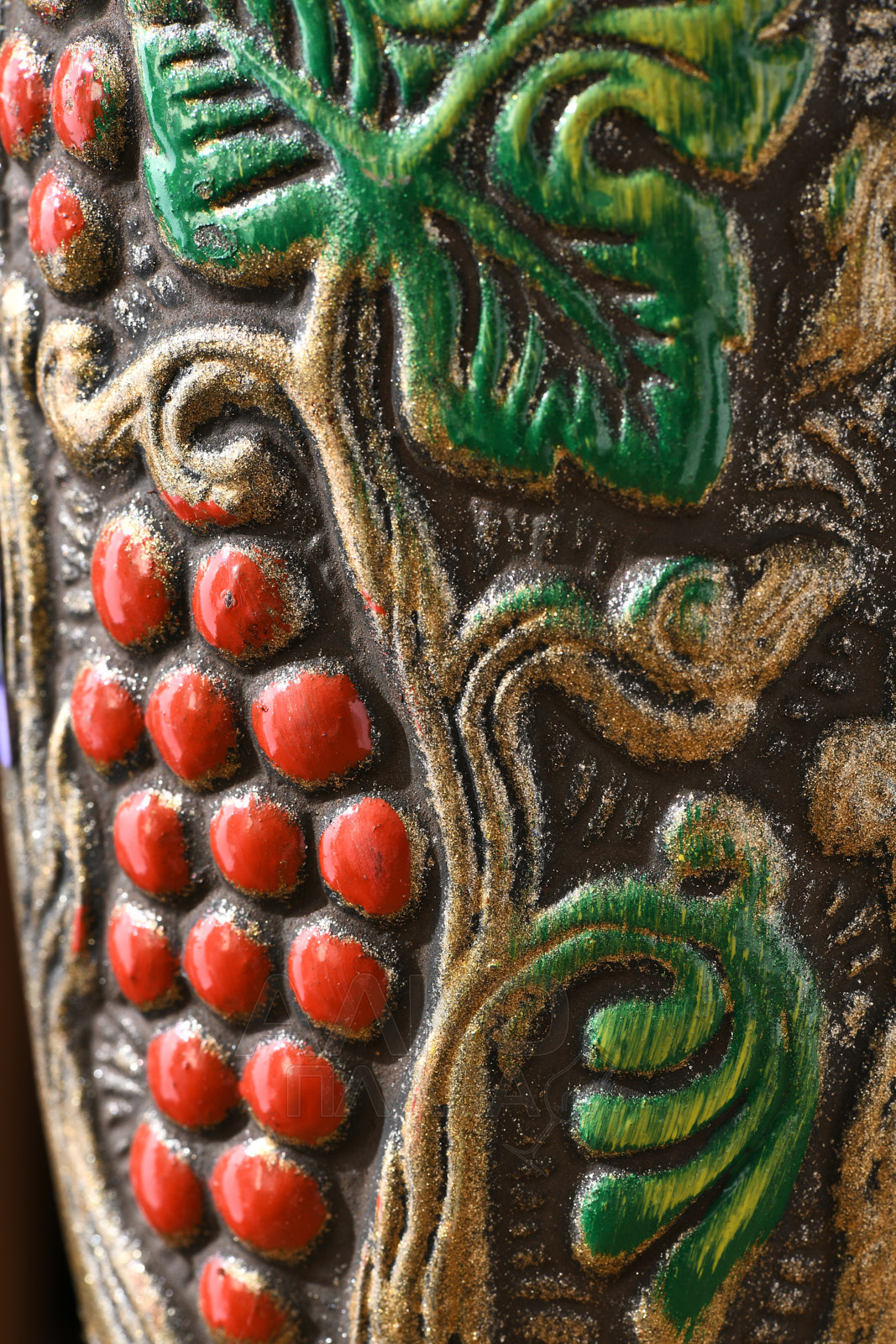 Красное сухое вино Саперави Джорджиа Кантри Вайнс 1 л в глиняном кувшине — традиционный грузинский сорт в подарочном оформлении. Керамическая бутылка ручной работы украшена лозами и виноградными гроздьями. Тара выглядит изящно и стильно, будет отлично смотреться на праздничном столе и в винном шкафу. Сухое вино сделано из автохтона Саперави, который был выращен в Кахетии в экологически чистых условиях, собран на пике спелости и переработан в соответствии с исконными технологиями винификации.