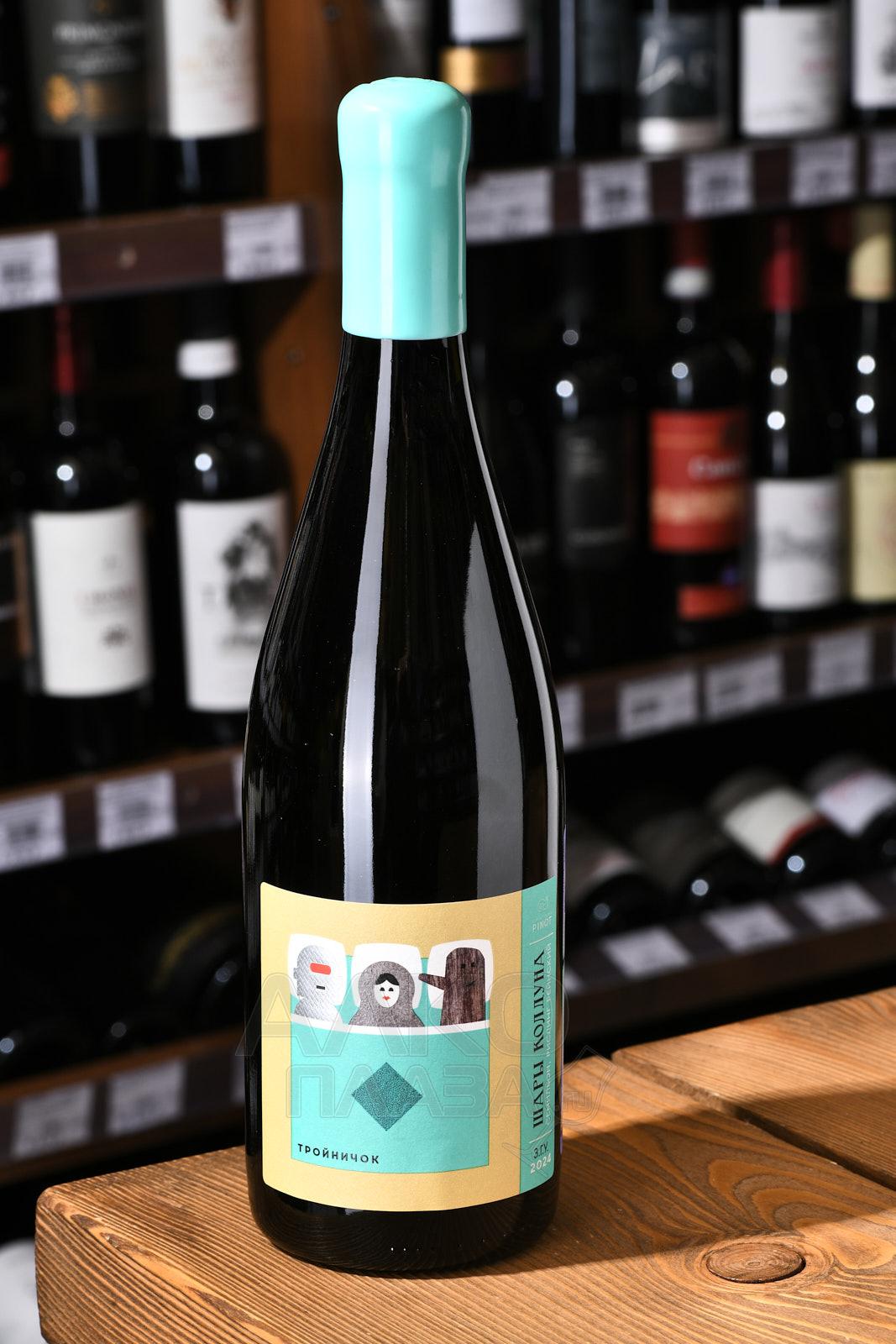 Белое сухое вино Шато Пино Шары Колдуна Тройничок 0,75 л создано из сортов Рислинг и Руссан. Виноград собирают вручную с виноградников хозяйства, расположенных в микрозоне Мысхако. В производстве используют особый подход к ферментации и выдержке. Сорт Руссан ферментируют в бетонных резервуарах, затем вино выдерживают на тонком осадке в течение 6 месяцев. Рислинг разделяют на две части: первая ферментируется и выдерживается в дубовых бочках, вторая – в стальных чанах с выдержкой на осадке 4 месяца. Именно такое сочетание методов выдержки делает это вино уникальным, многогранным и интересным по вкусу.