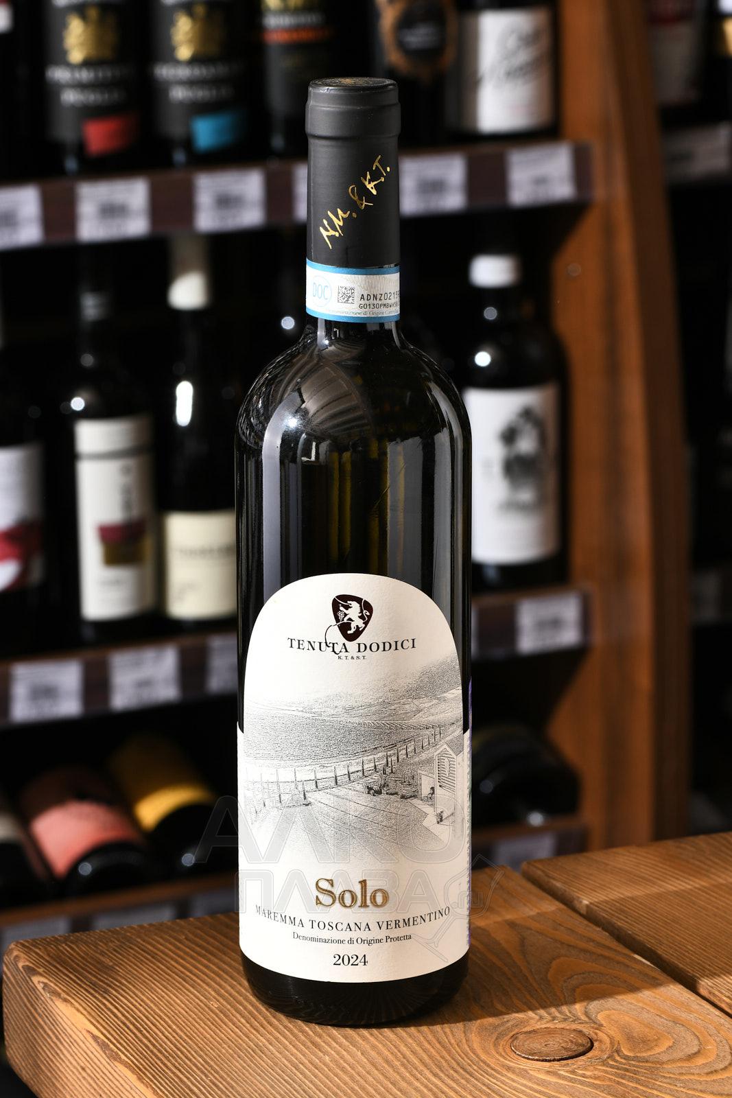 Вино 12 Solo Dodici Vermentino Maremma Toscana 0,75 л – белое сухое вино из тосканского субрегиона Маремма. Оно изготовлено из винограда Верментино, растущего в поместье, владельцем которого является наш соотечественник, режиссер Никита Михалков. Алкогольная ферментация сусла проходит в стальных чанах при контролируемой температуре. Затем 24 часа вино выдерживается на осадке и переливается в бочки из нержавеющей стали, где созревает на протяжении 3-5 месяцев. Перед продажей вино проводит 30 дней в бутылке. Название напитка перекликается с творчеством Михалкова – цифра «12» символизирует аналогичное название известного фильма. На этикетке бутылки присутствует гравировка подписи самого режиссера, поэтому сорт представляет коллекционный интерес для любителей современного отечественного киноискусства.