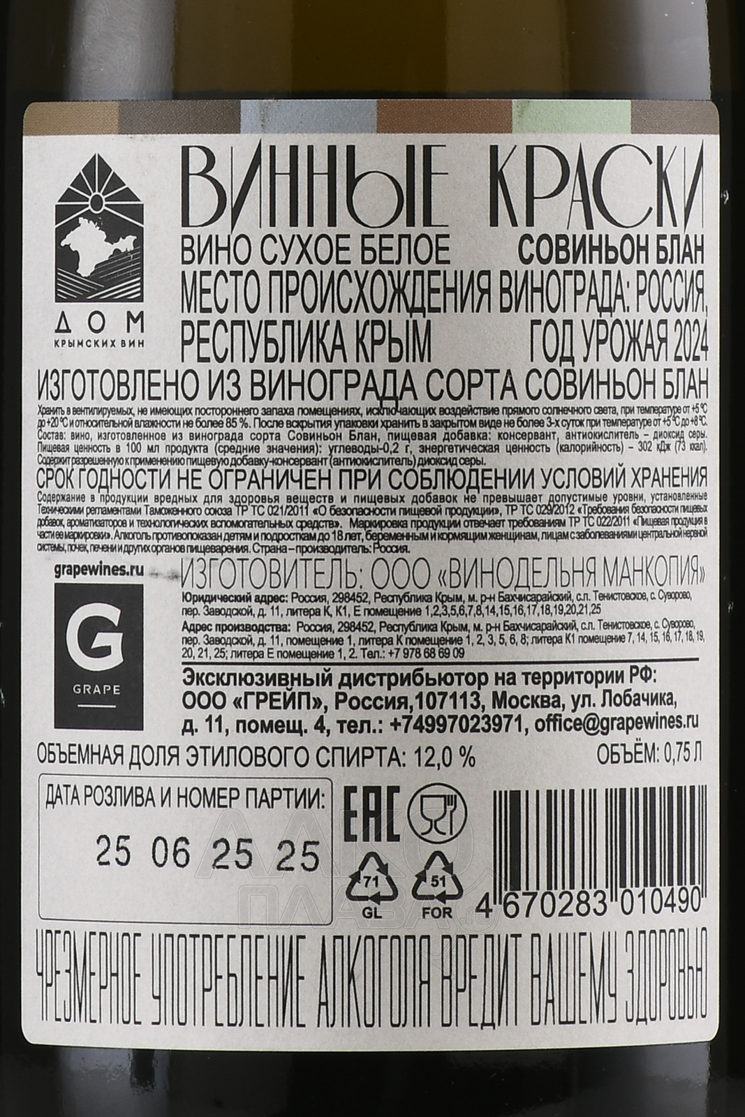 Вино Винные Краски Совиньон Блан 0.75 л белое сухое
