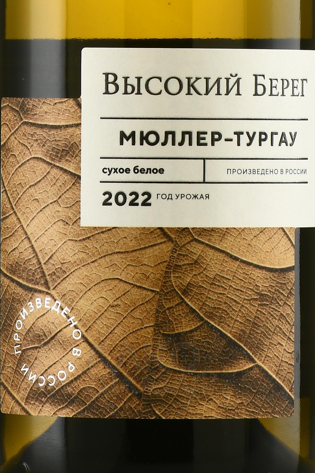 Белое сухое вино Высокий берег Мюллер-Тургау 2021 г. российского производства: оно было выпущено отечественной компанией из Краснодарского края, которая использовала в роли сырья популярный европейский виноград с лоз средним возрастом 15 лет, расположенных неподалеку от г. Анапы. 12-градусный алкоголь подвергся процедурам сбраживания при строгом термоконтроле и фильтрации.
