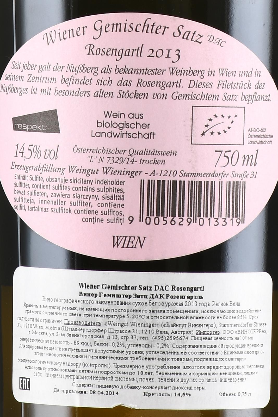Wiener Gemischter Satz DAC Rosengartl - вино Винер Гемиштер Затц ДАК Розенгартль 0.75 л белое сухое