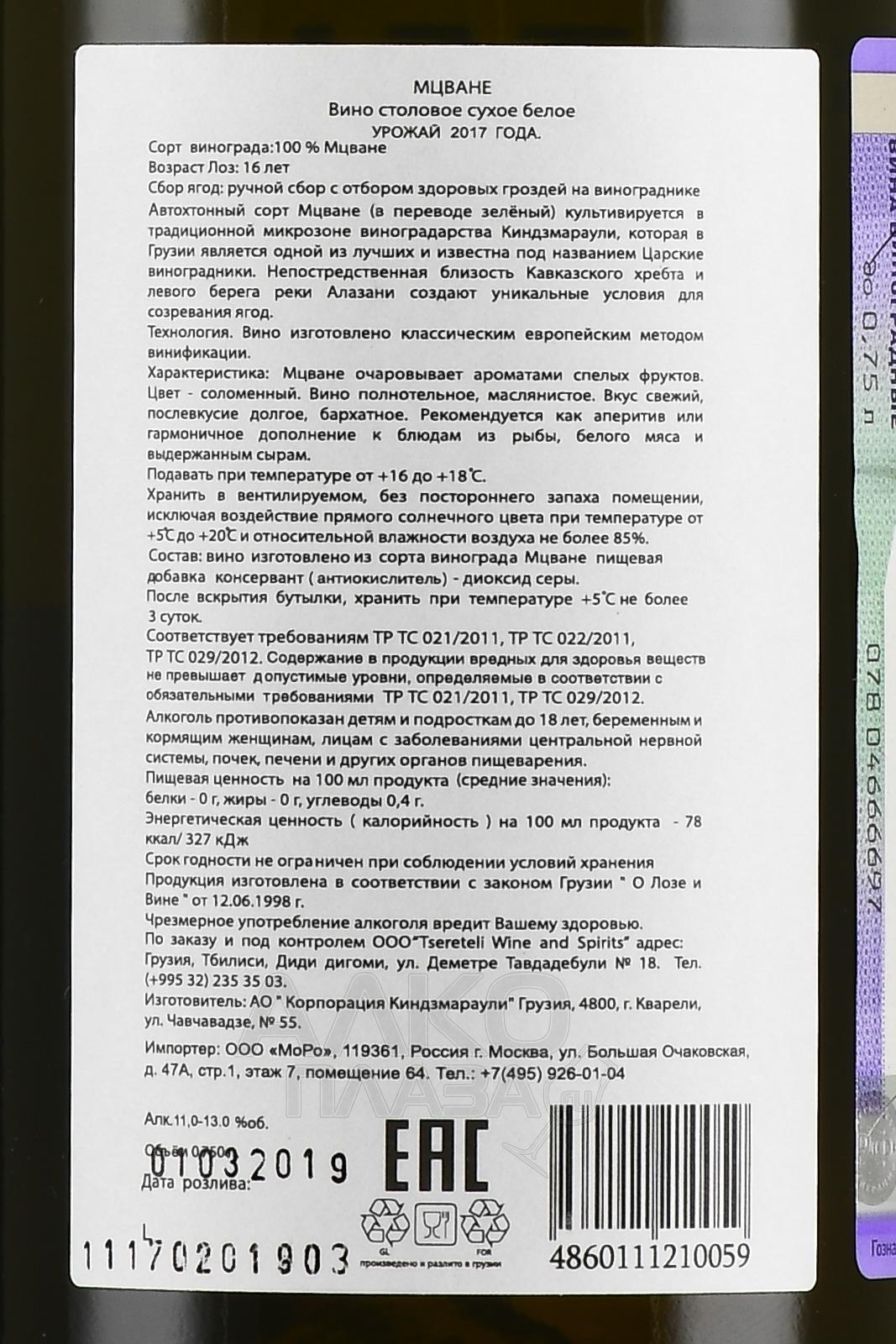 Белое сухое вино Zurab Tsereteli Mtsvane 0,75 л изготовлено из ягод уважаемого грузинского автохтона. Плоды собирают на кахетинских виноградниках, тщательно сортируют и перерабатывают согласно европейской технологии винификации. В соответствии с этим методом отжатый из сырья сок сбраживается со специально выведенными видами дрожжей в чанах из нержавеющей стали. Процесс осуществляется при контролируемой низкой температуре. Соблюдение нюансов производственного процесса позволяет получить напиток с превосходным свежим профилем и доминирующими фруктовыми тонами.