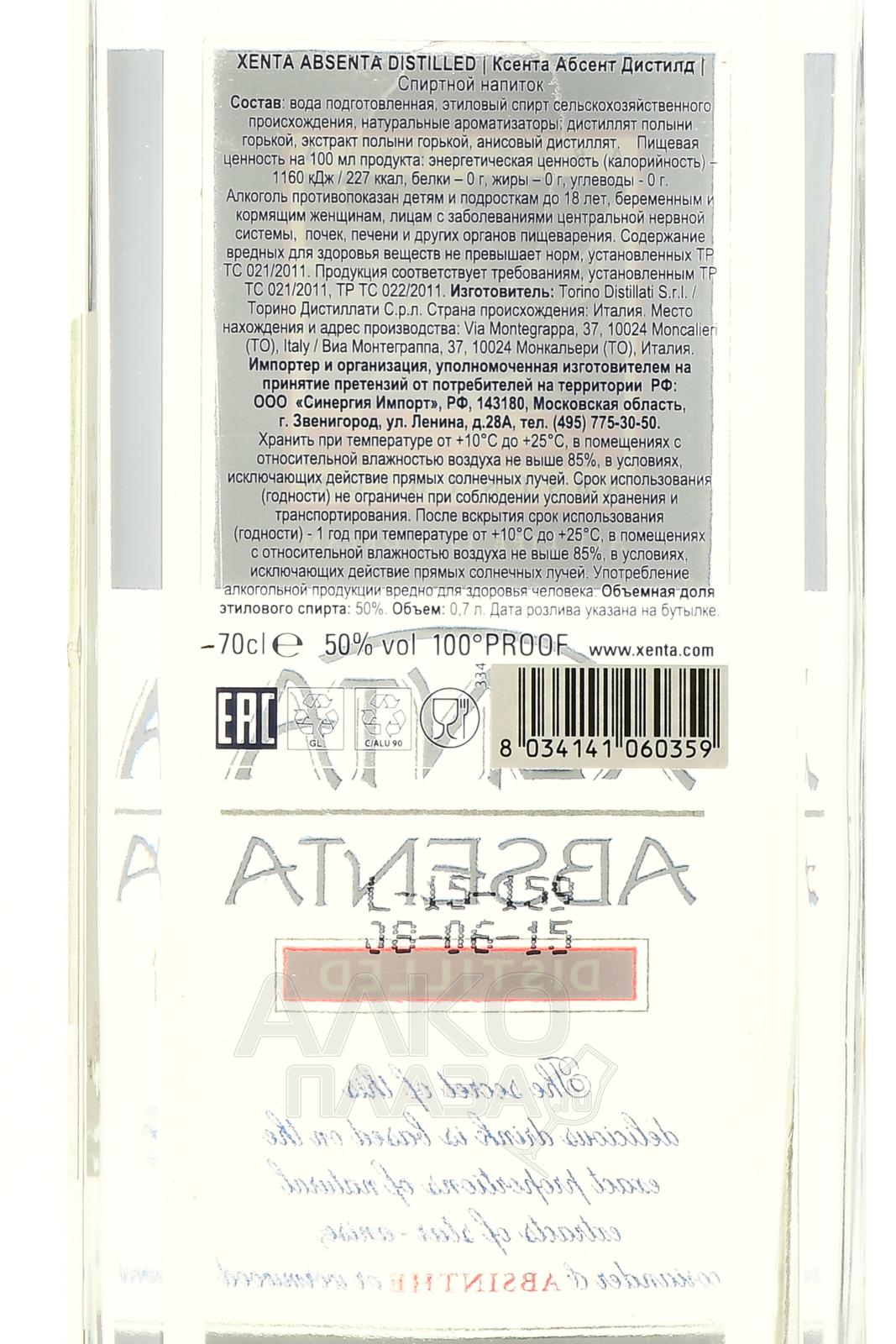Абсент Ксента Дистилд 0.7 л – прозрачный напиток с изысканным насыщенным вкусом. Прекрасен как в чистом виде, так и во множестве коктейлей. Для создания напитка используют полынь, которая произрастает в Альпах, на высоте 2000 м над уровнем моря. Сырье собирают вручную, срезая листья только верхней части растения на заключительной фазе их цветения. Особая технология дистилляции настоя трав превращает абсент в благородный прозрачный белый цвет за счет потери хлорофилла, содержащегося в растениях. Крепость напитка 50%.