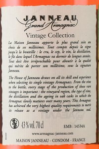 Janneau Vintage Collection - арманьяк Жанно Винтажная Коллекция 1980 год 0.7 л в п/у