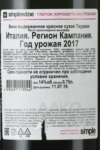 Красные вина региона Кампания отличаются насыщенным вишневым цветом и демонстрируют изысканный букет с нежными древесными тонами, акцентами спелых темных фруктов, диких ягод. Аромат тонкий, гармоничный, с ярко выраженными сливовыми нотками, которые оттеняют легкие штрихи специй, лакрицы, цитрусовых. Алкоголь подойдет к блюдам из красного мяса, пасте, ризотто, выдержанным сырам, кушаньям, приготовленным на гриле.