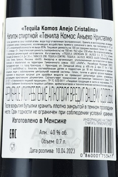 Komos Anejo Cristalino Tequila - текила Комос Аньехо Кристалино 0.7 л